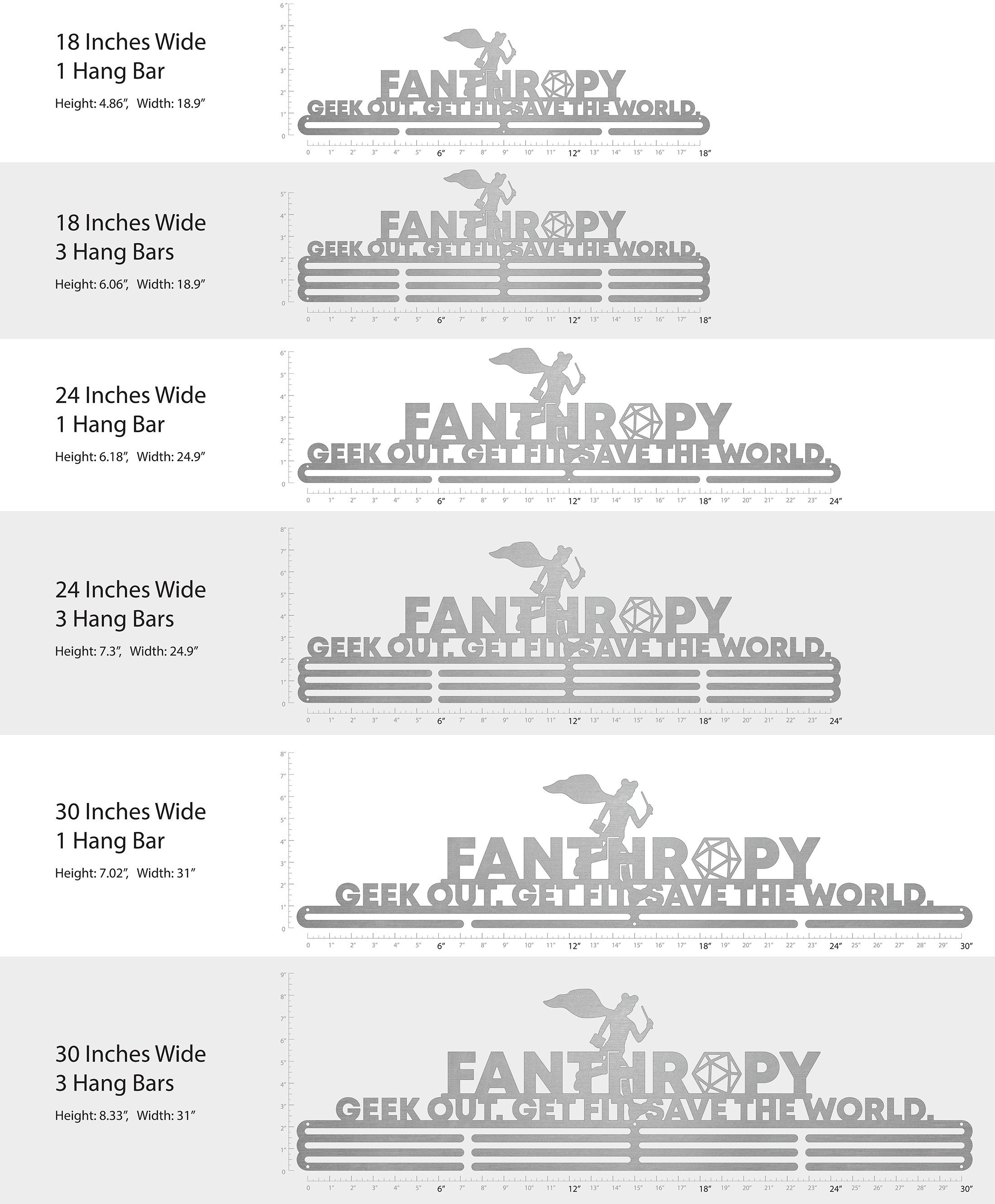 Unsure what size to get? We have created two consistently scaled images to show you what different sized displays look like when filled with medals.