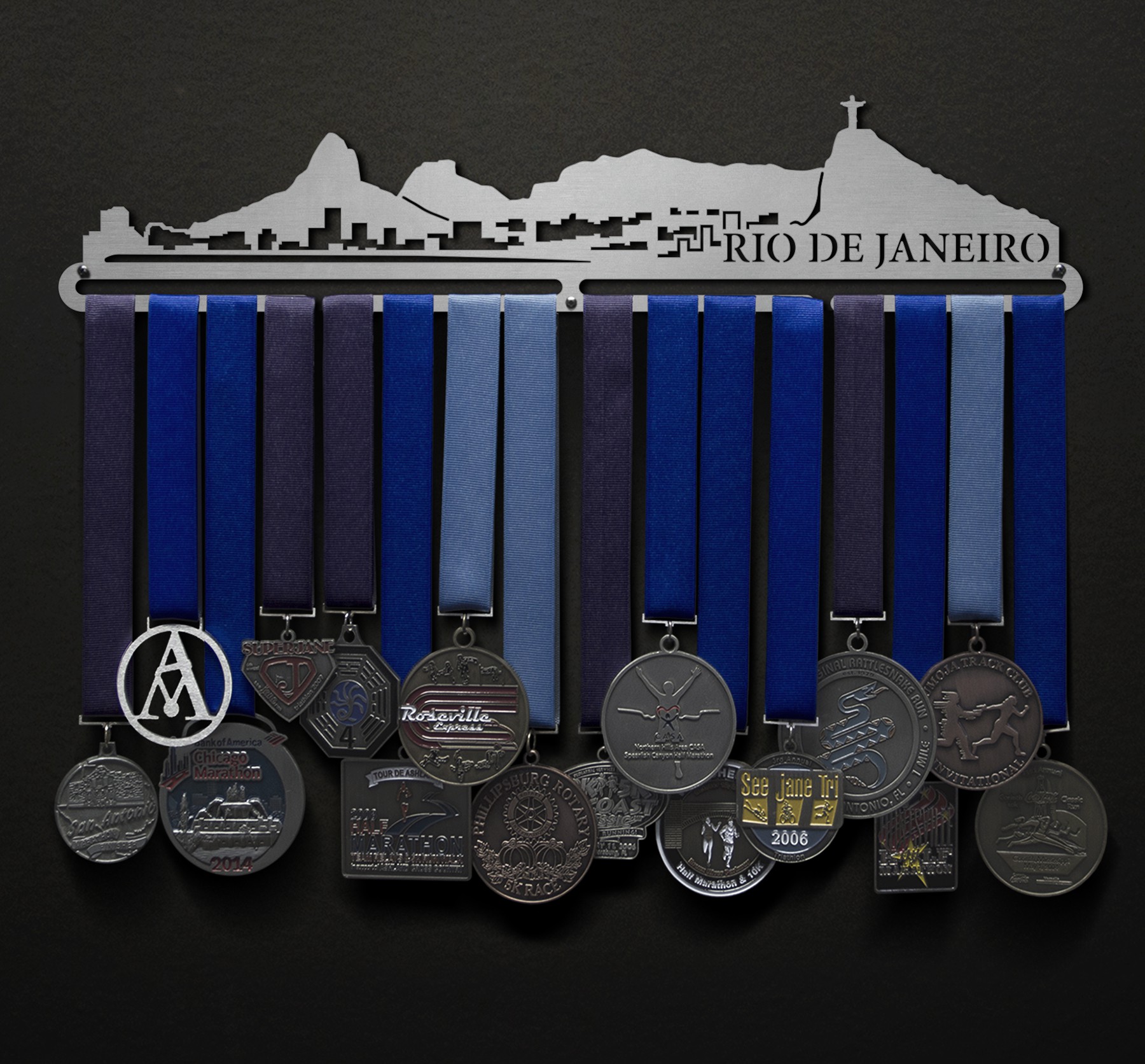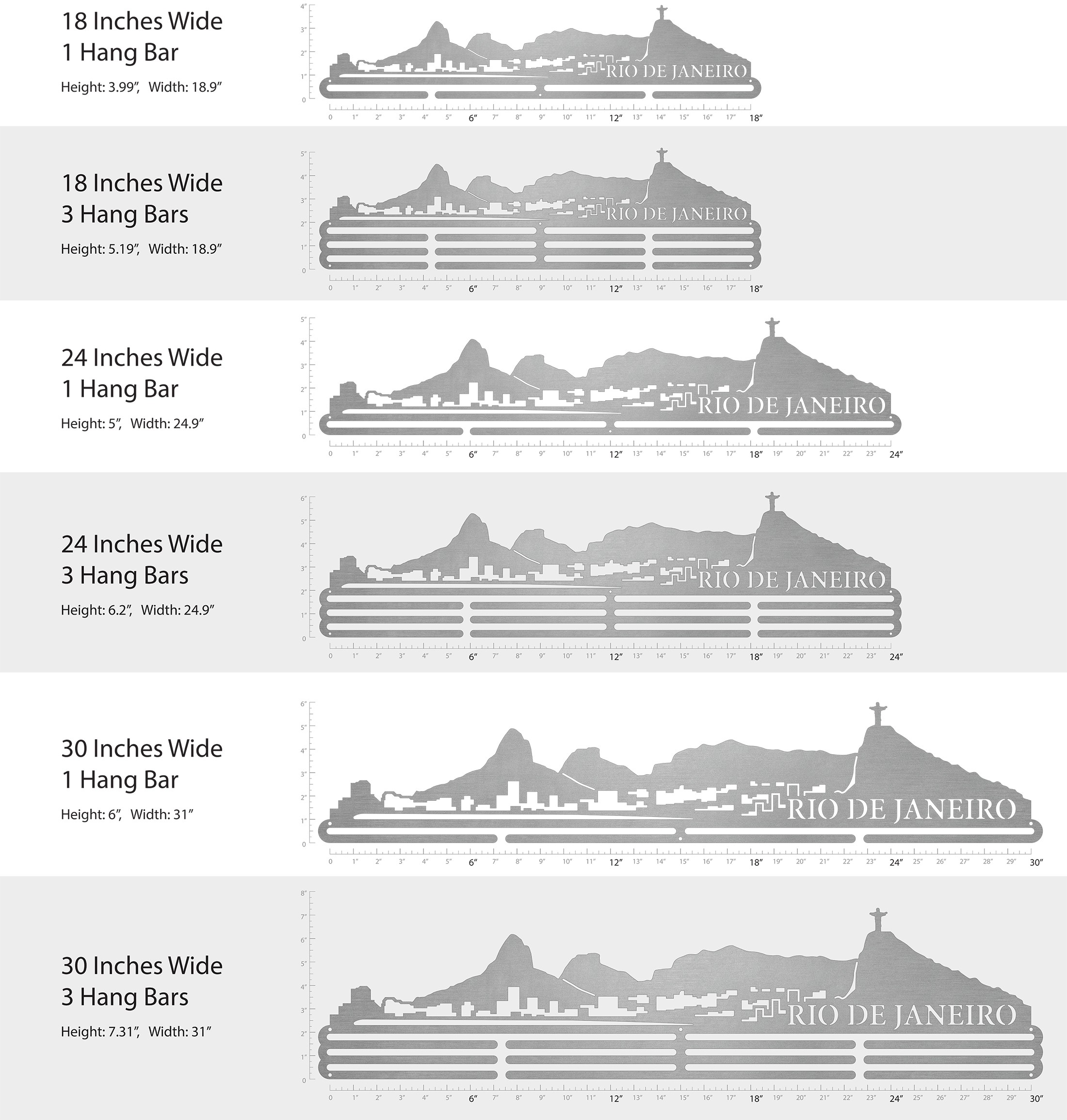 Unsure what size to get? We have created two consistently scaled images to show you what different sized displays look like when filled with medals.