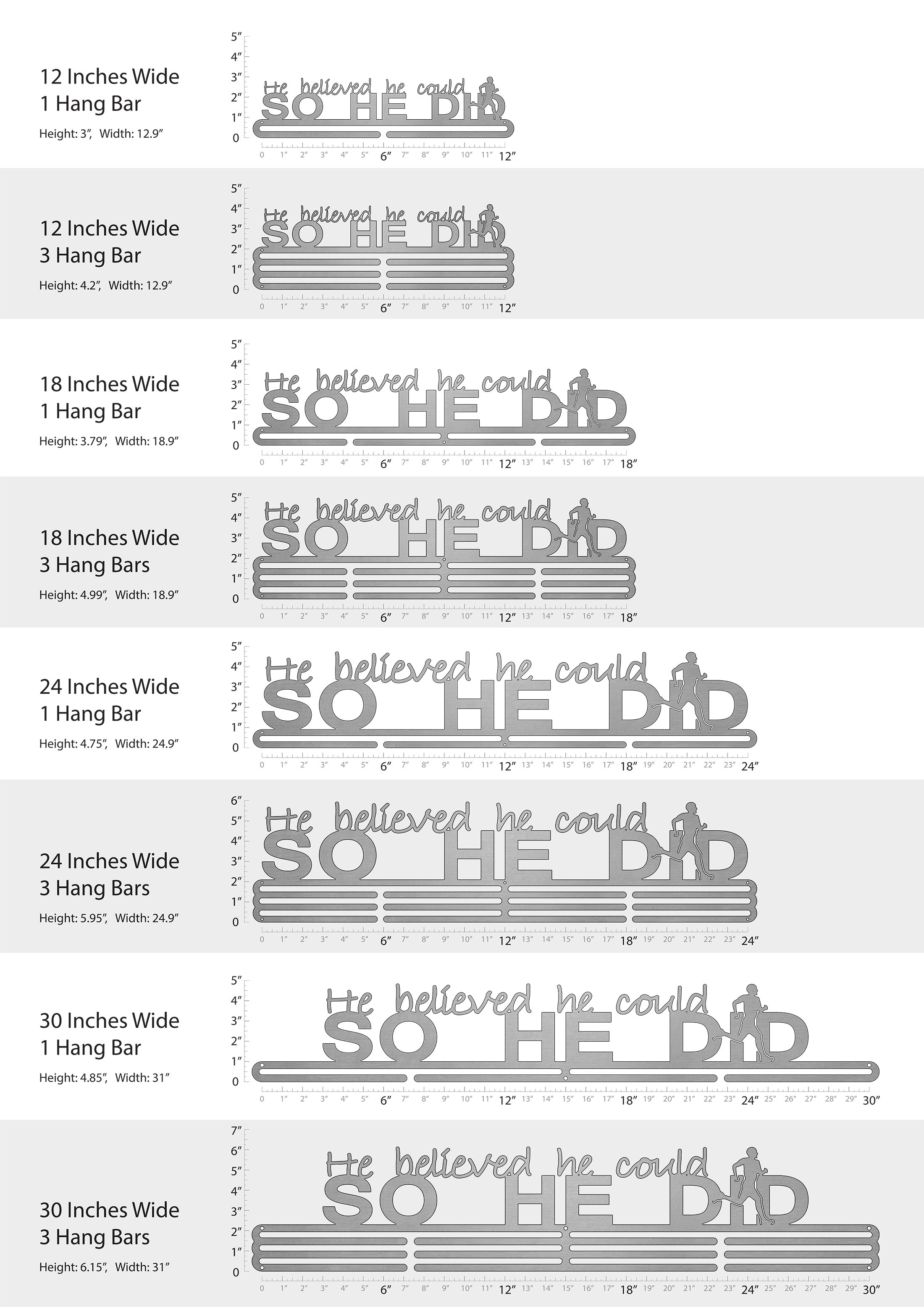 Unsure what size to get? We have created two consistently scaled images to show you what different sized displays look like when filled with medals.