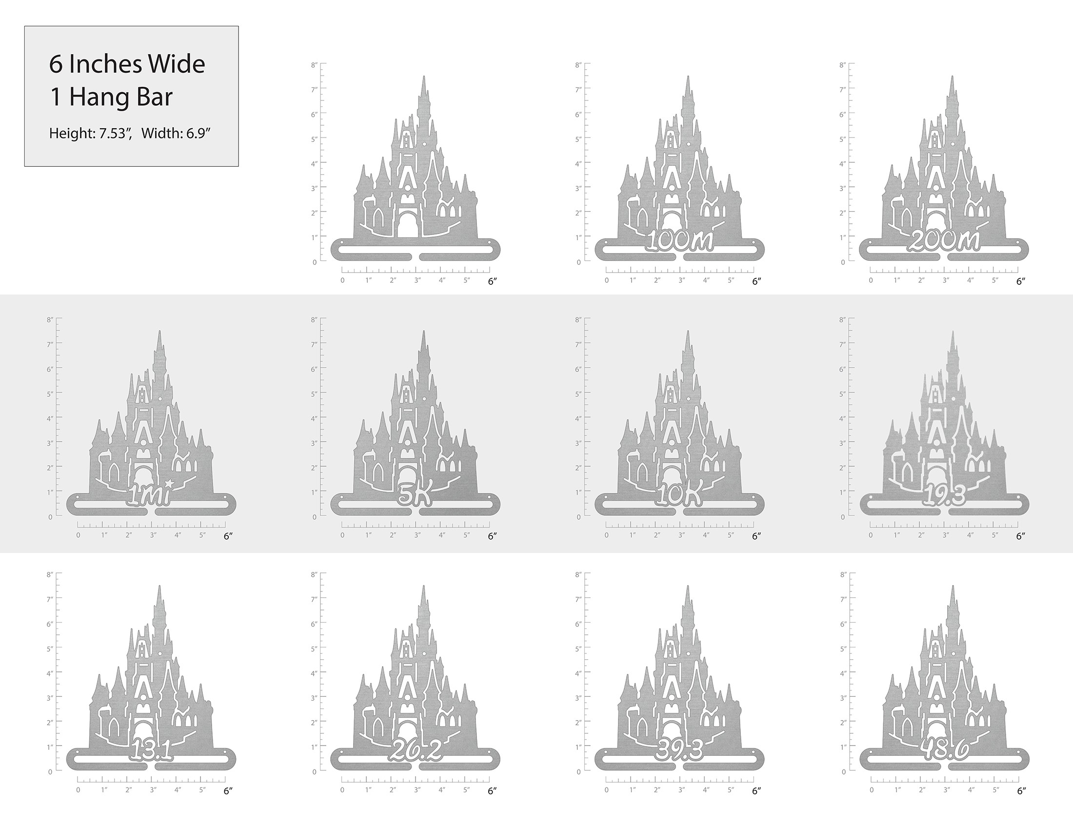 Unsure what size to get? We have created two consistently scaled images to show you what different sized displays look like when filled with medals.