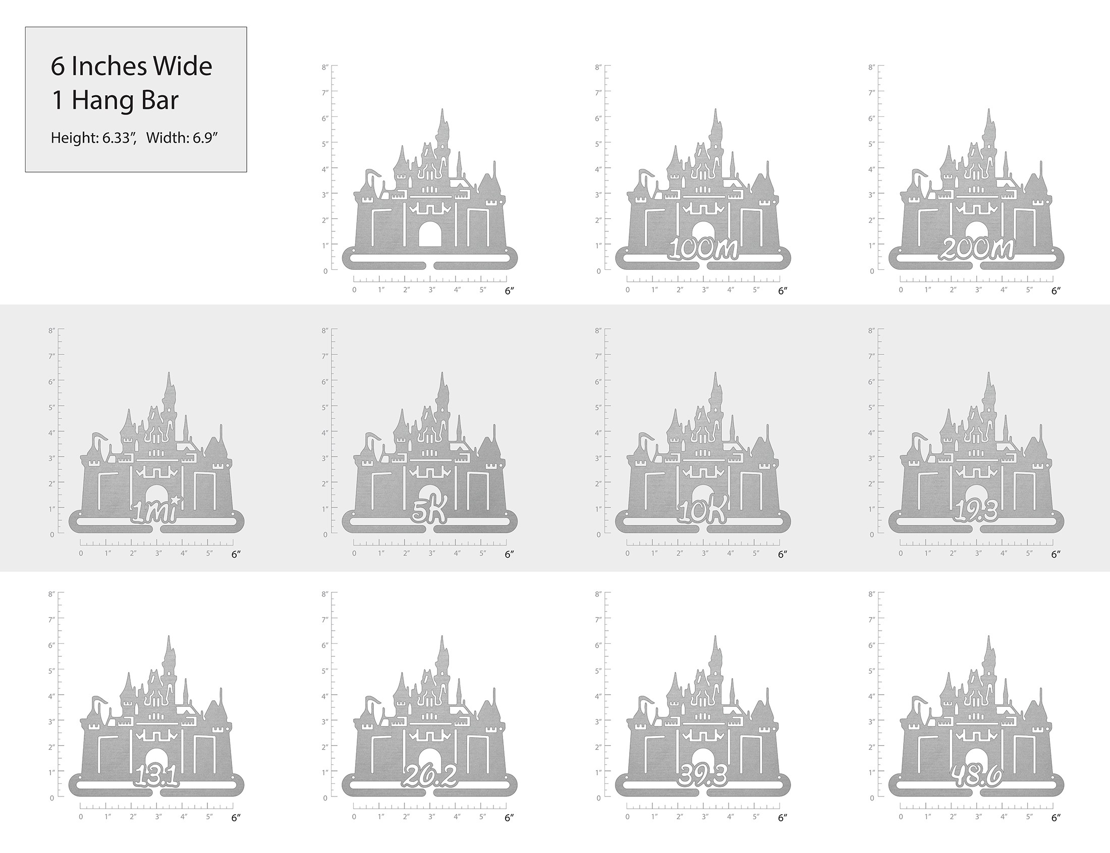Unsure what size to get? We have created two consistently scaled images to show you what different sized displays look like when filled with medals.
