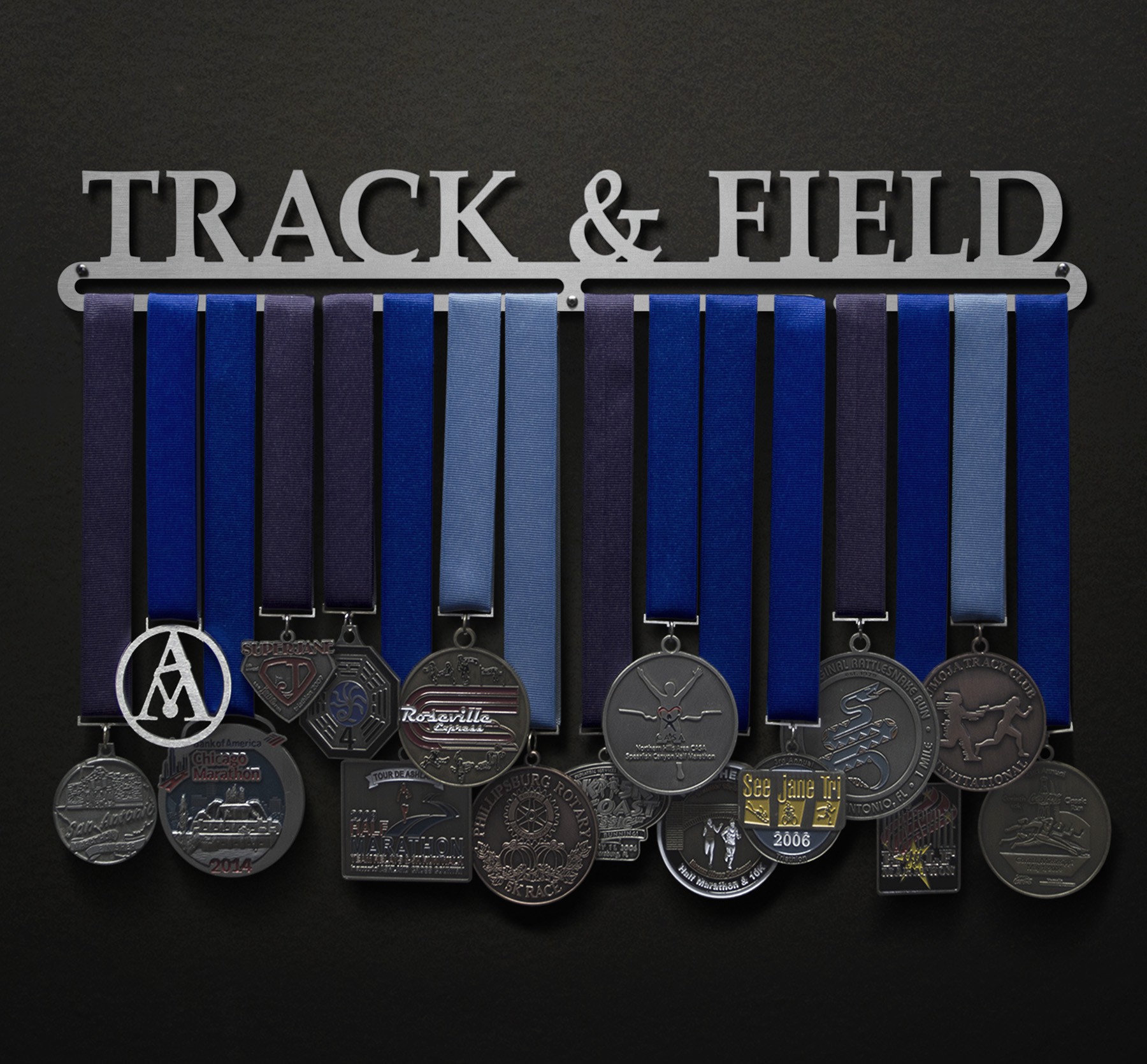 You worked so hard for the medal, just to toss it into a drawer?! Not anymore! Throw some pride on your wall with this Track & Field medal hanger!