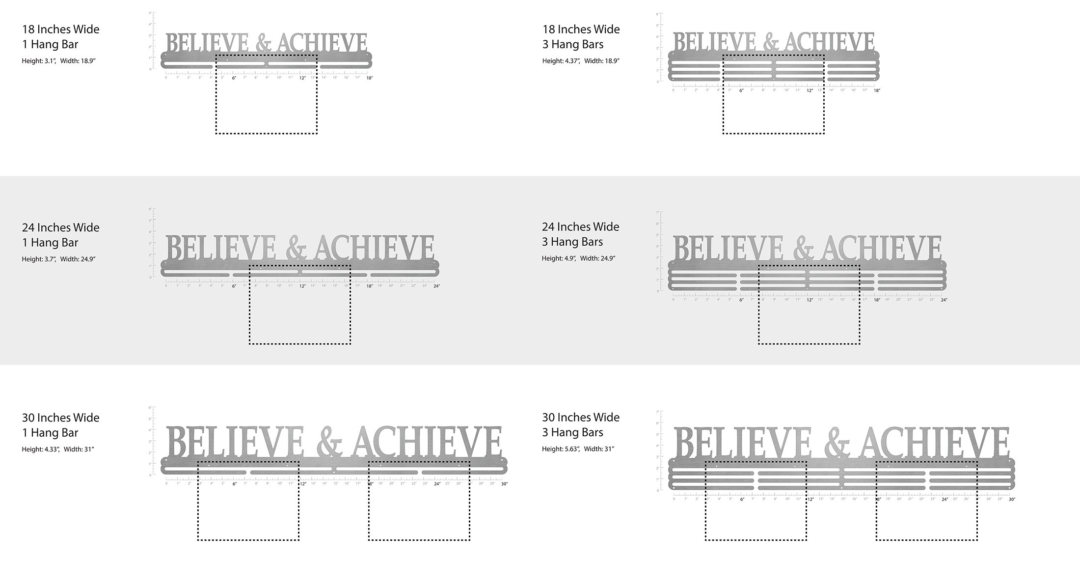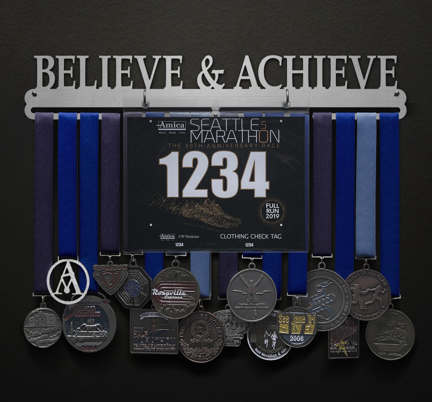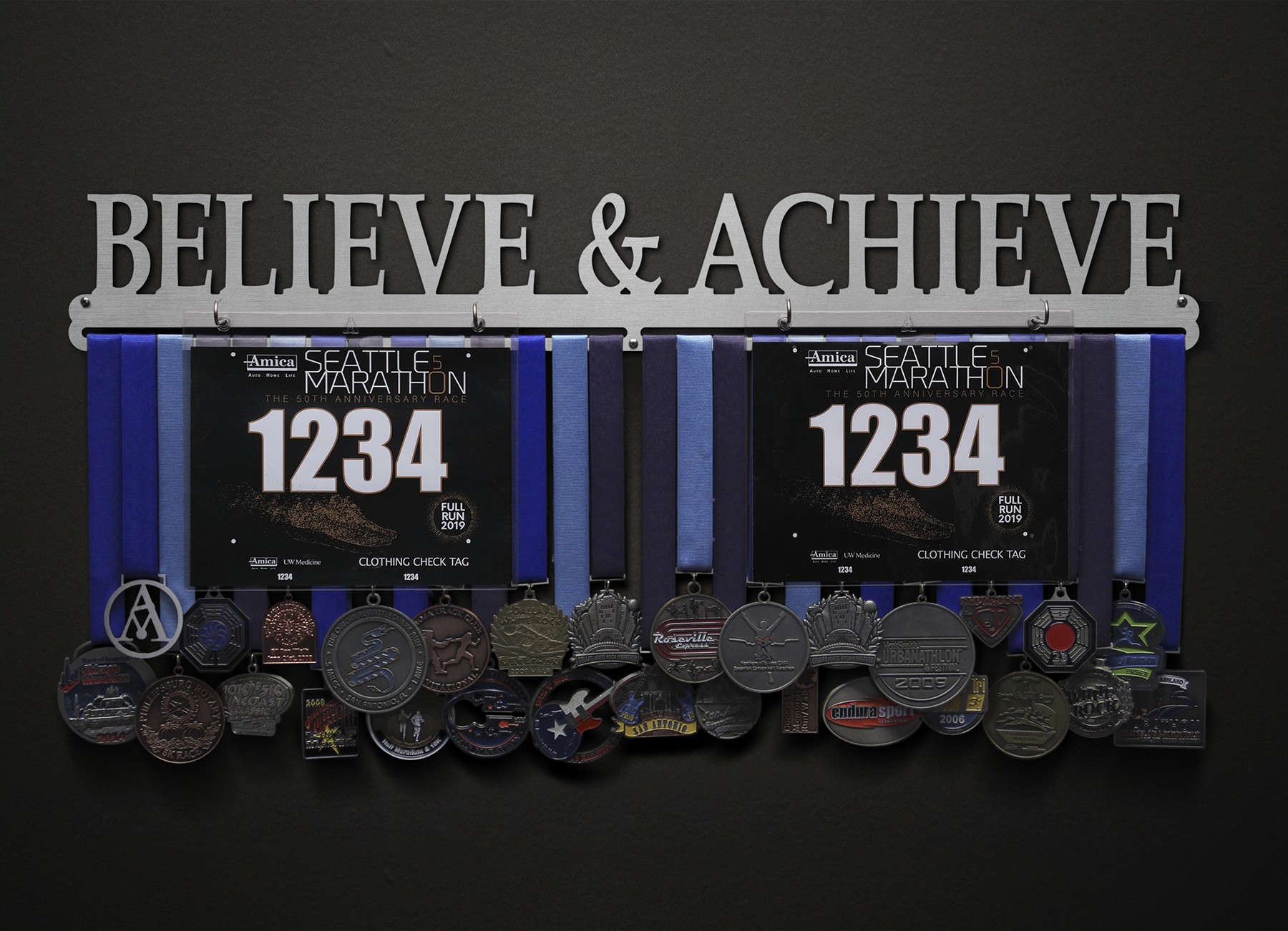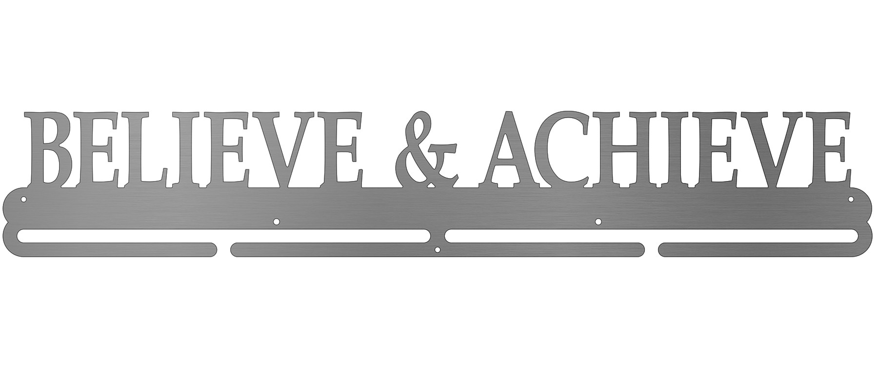 In order to achieve any goal that you set before yourself, you must believe that you are capable of such a triumph. Achieving starts with believing. The medal hanger is laser cut from brushed stainless steel for a simple yet classy appearance.