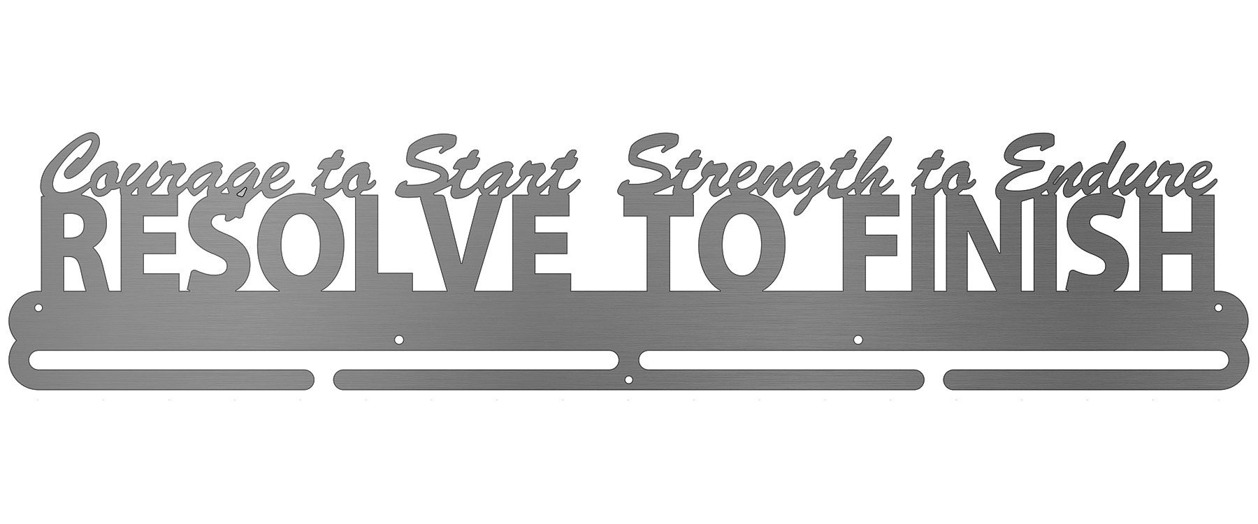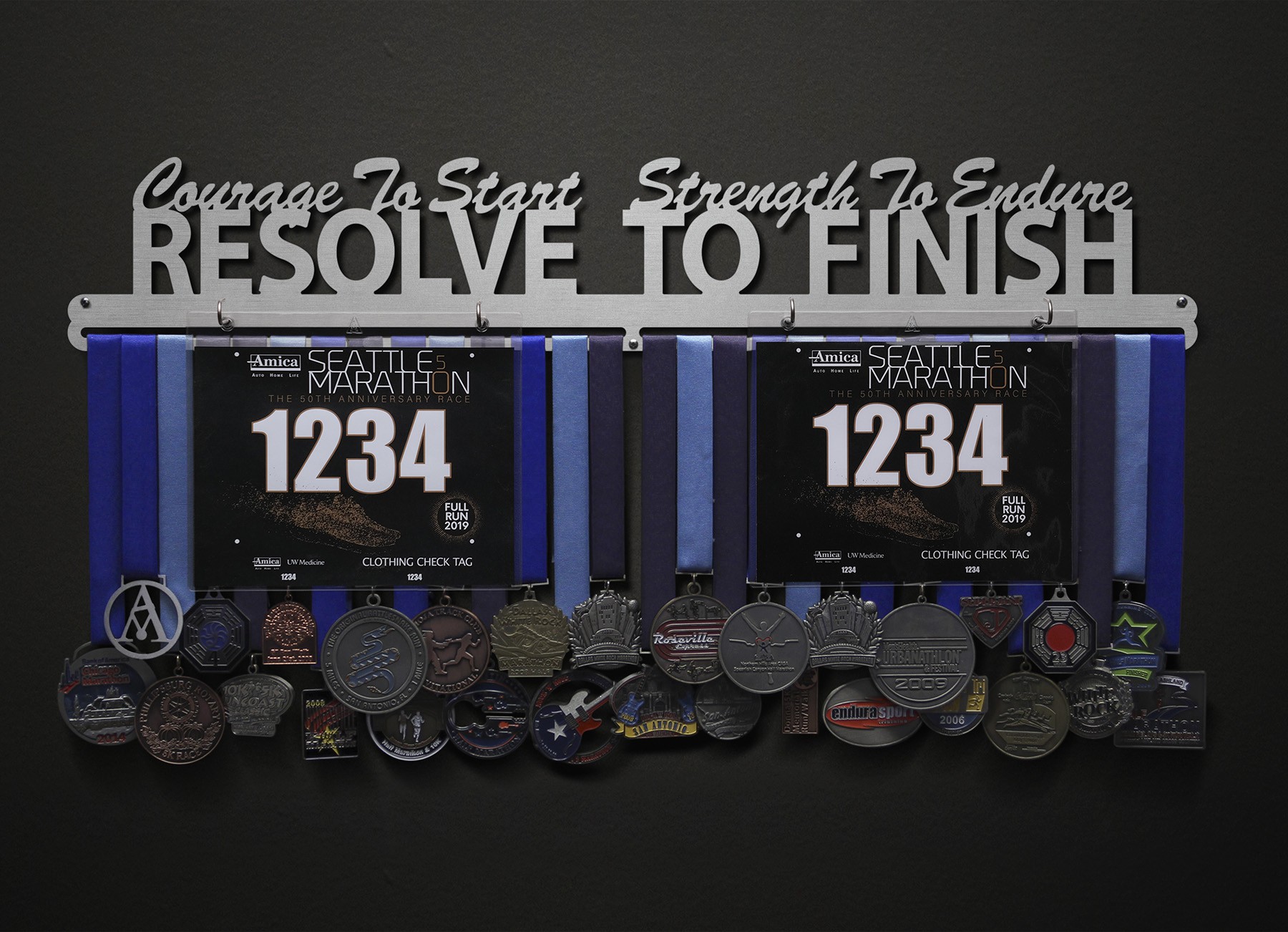 Courage To Start, Strength To Endure, Resolve To Finish Bib and Medal Display