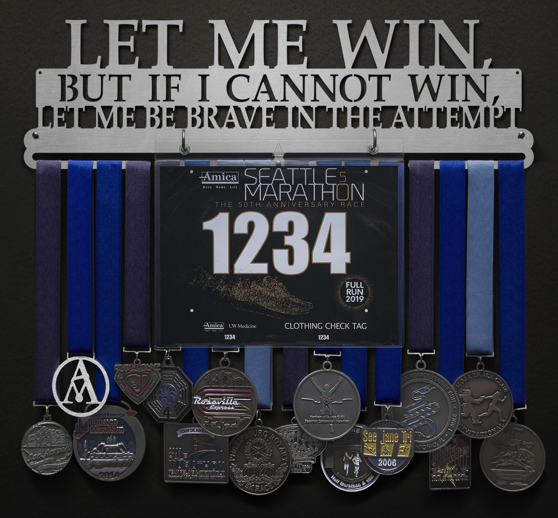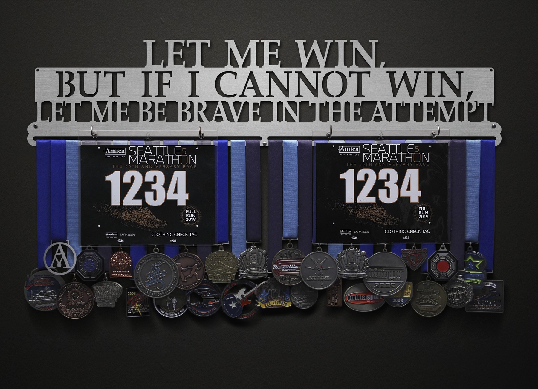 Let Me Win, But If I cannot Win, Let Me Be Brave In The Attempt Bib and Medal Display
