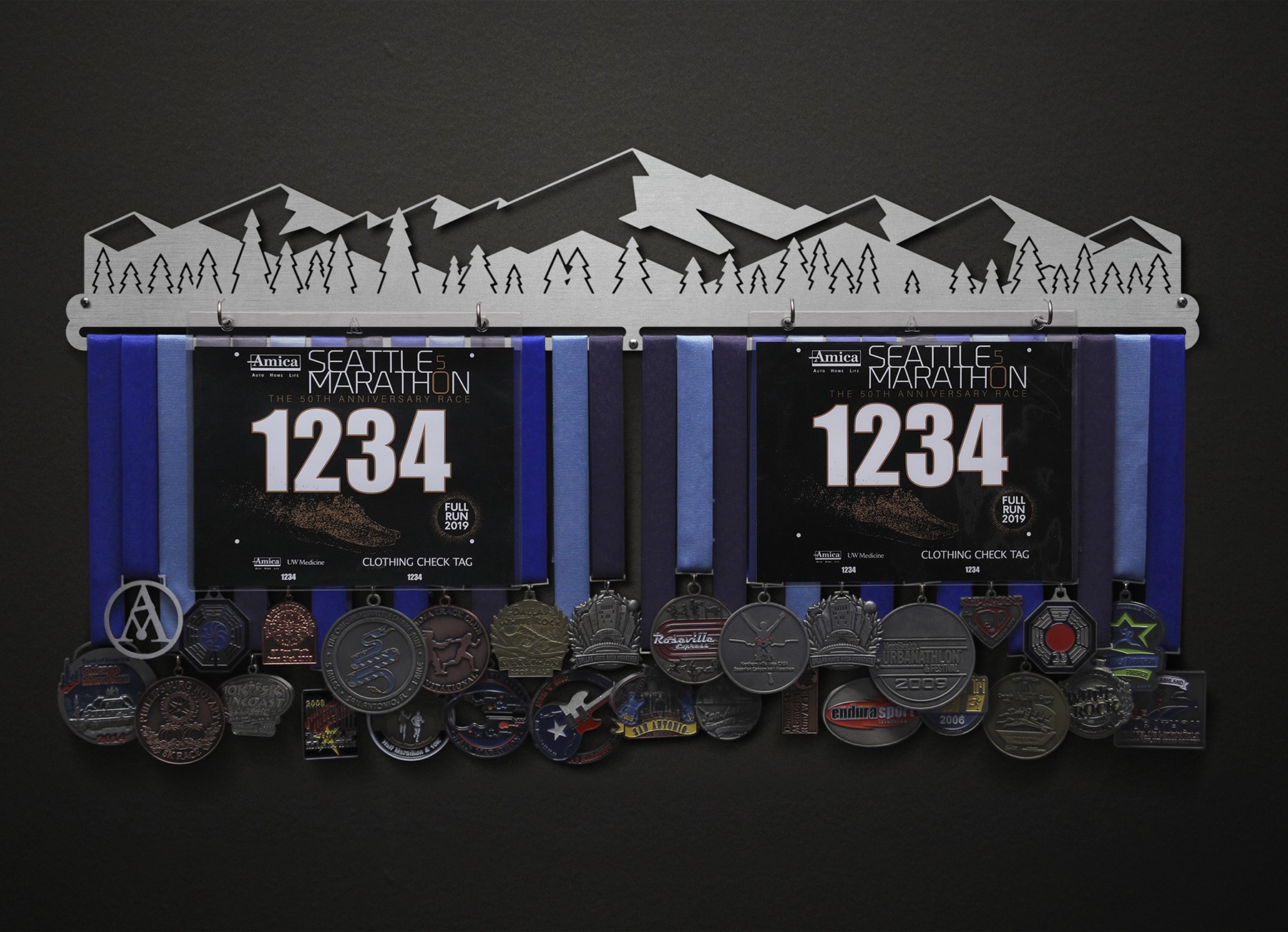 Mountain Scene - Stylized Version Bib and Medal Display