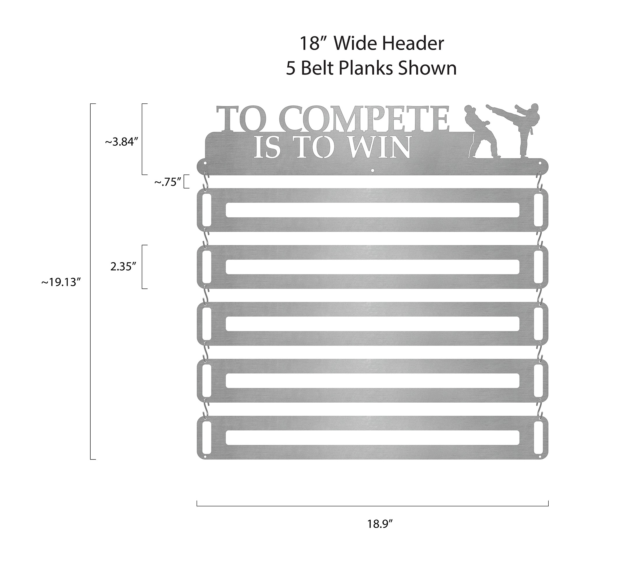 Most Martial Arts belts are 1.5", 1.75", or 2" wide. Please email us at [email protected] with your belt width size when you place your order so we can be sure we are sending you the proper size!