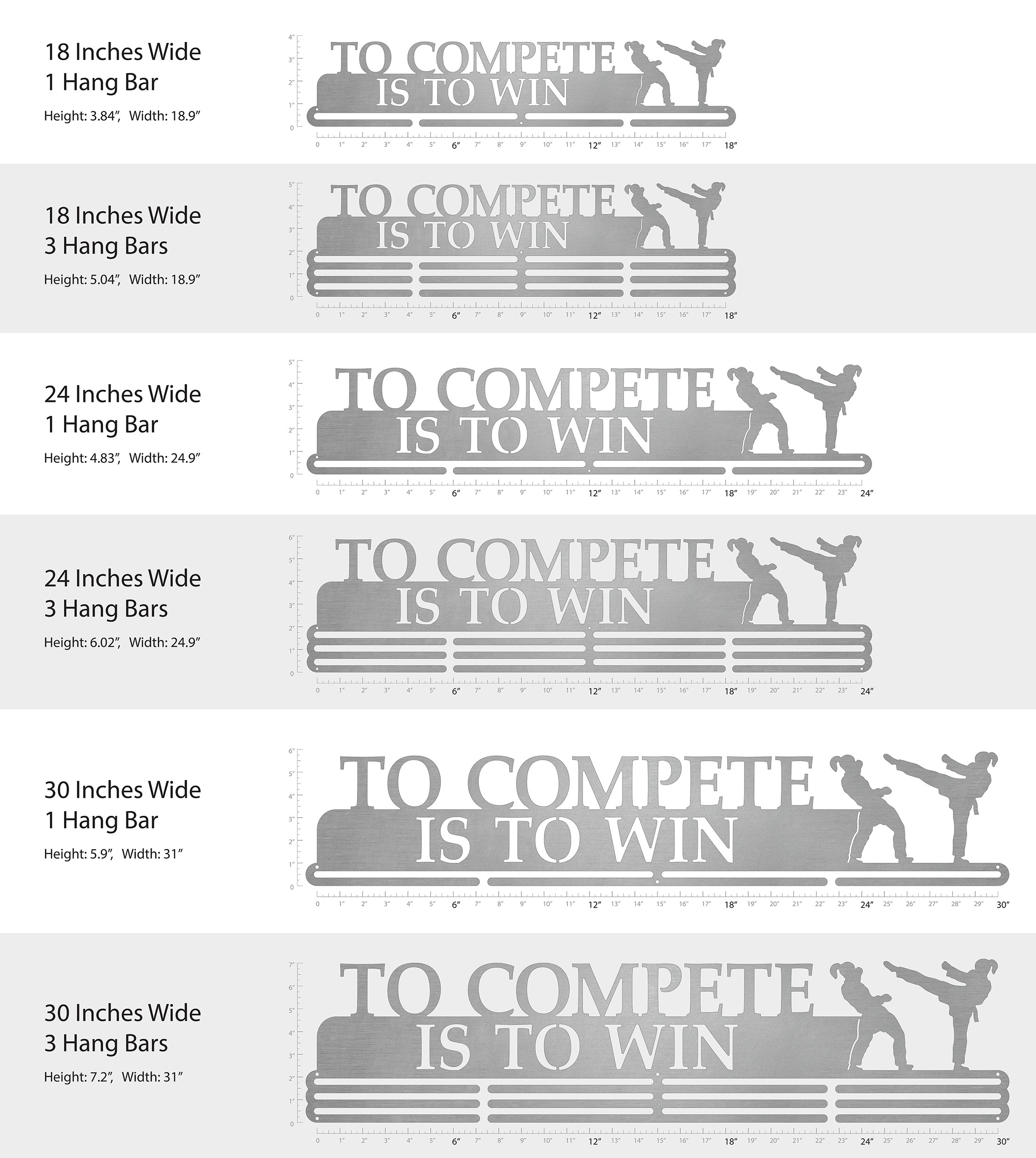 Unsure what size to get? We have created two consistently scaled images to show you what different sized displays look like when filled with medals.