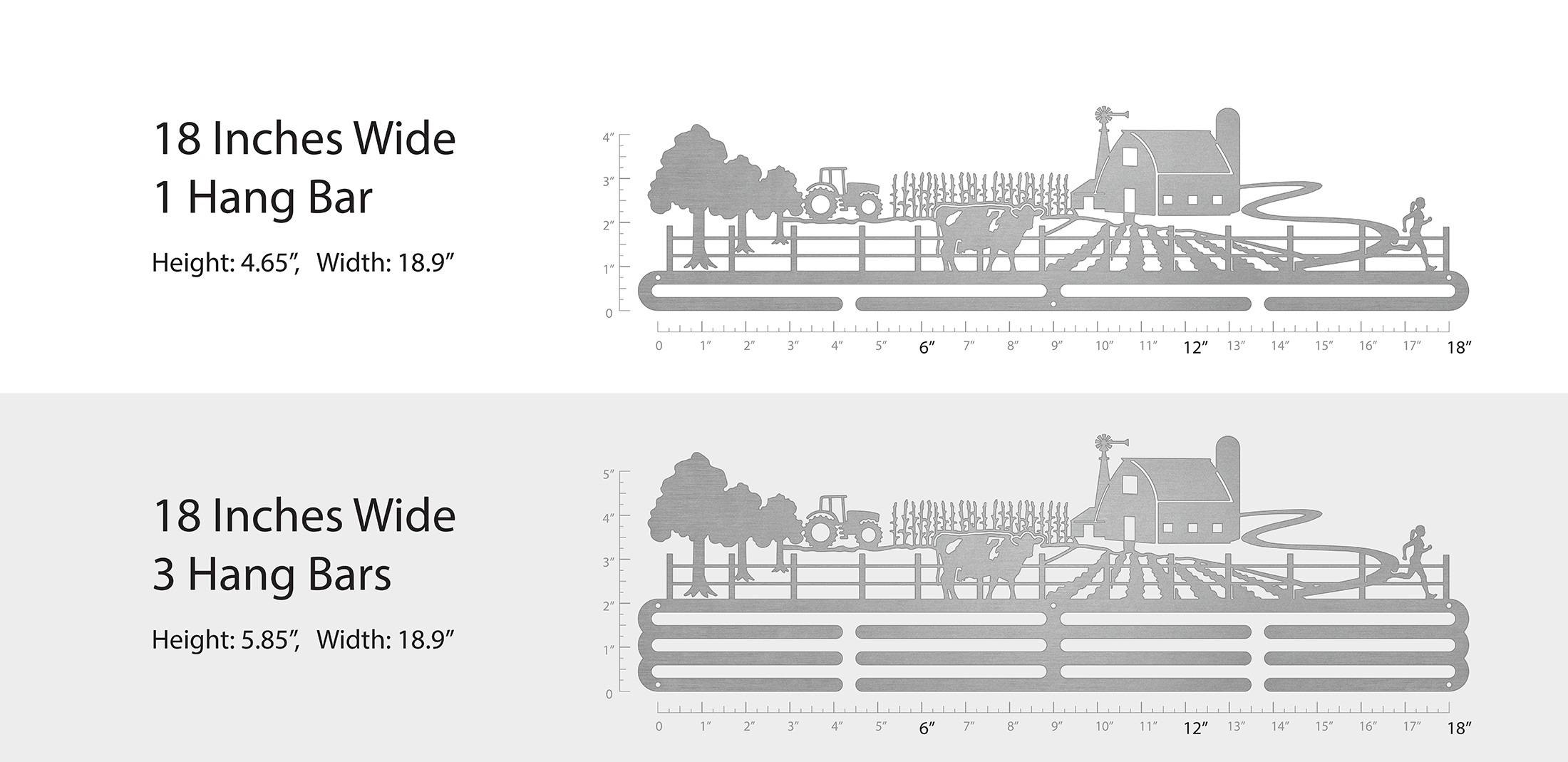 Unsure what size to get? We have created two consistently scaled images to show you what different sized displays look like when filled with medals.