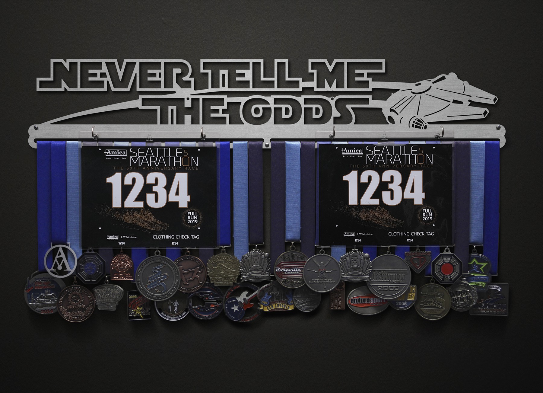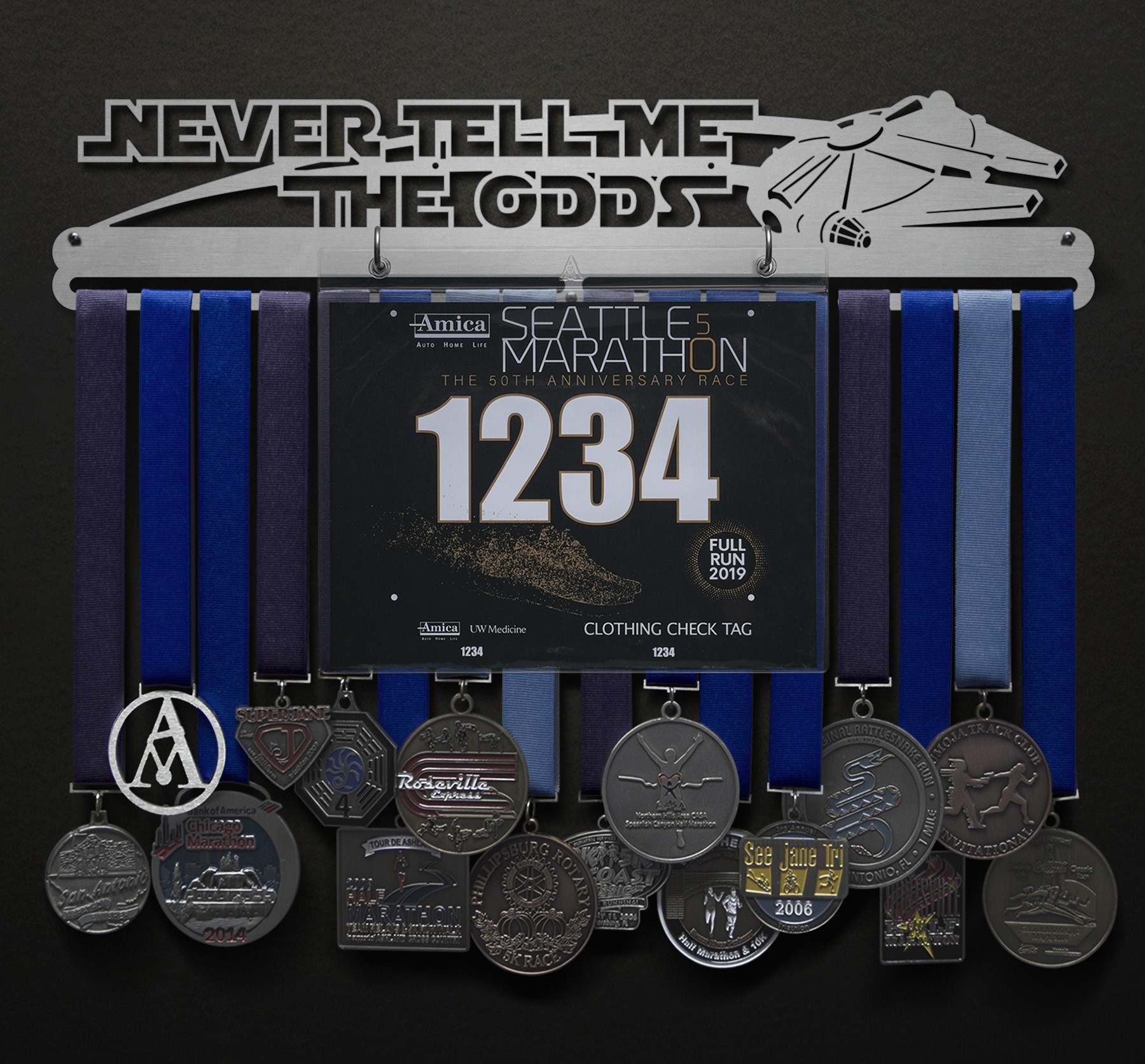 Never Tell Me The Odds Bib and Medal Display