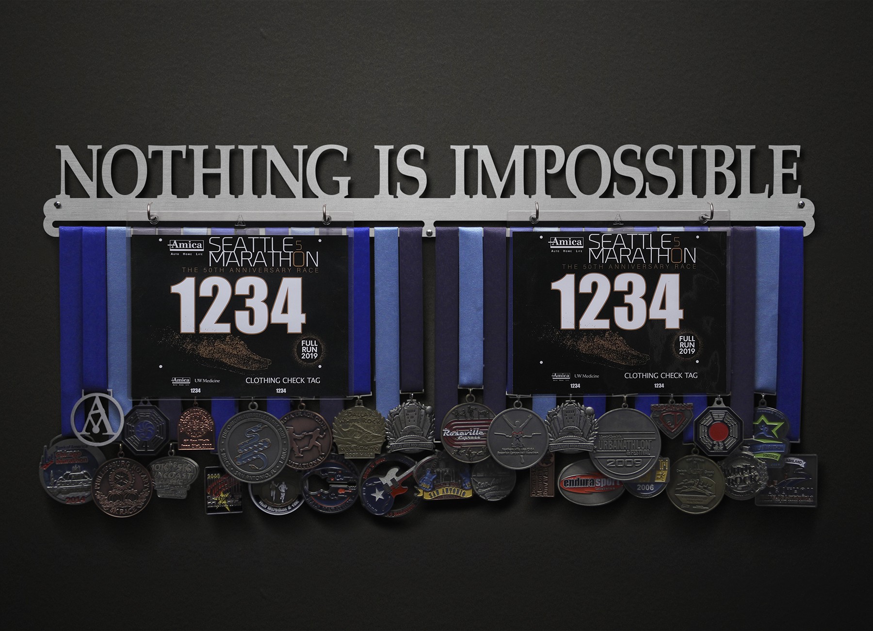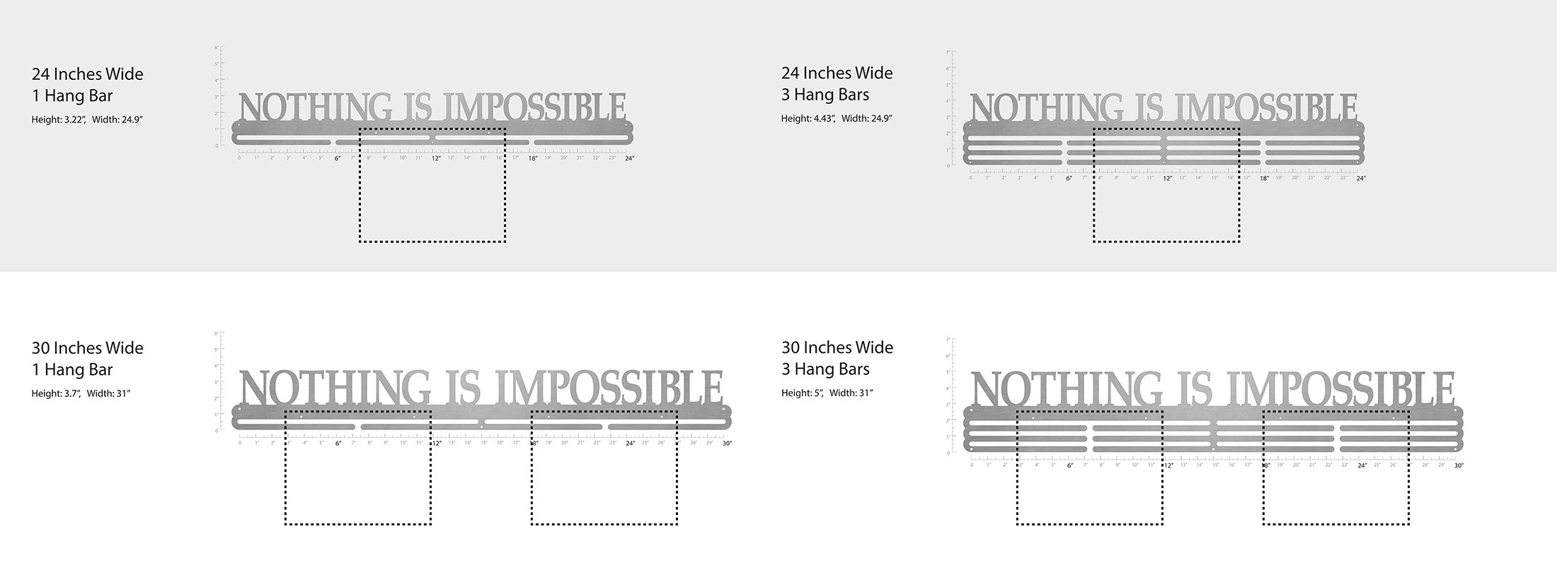 Unsure what size to get? We have created two consistently scaled images to show you what different sized displays look like when filled with medals.