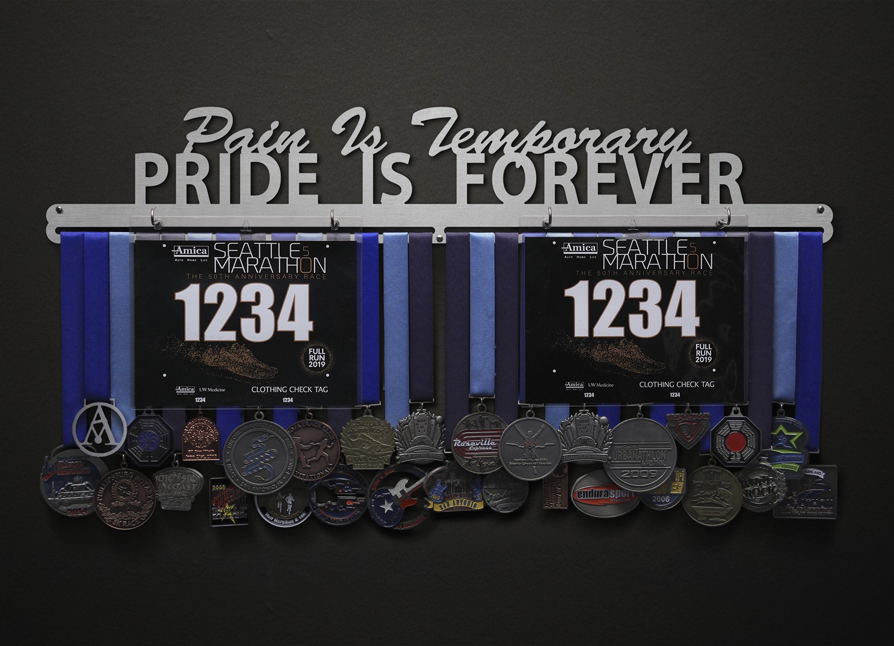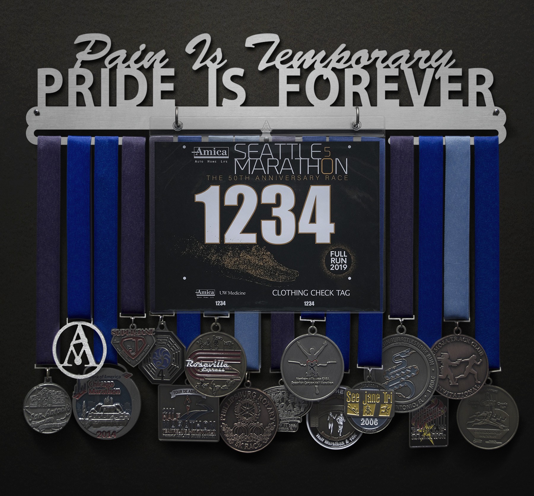 The blood, sweat, and tears shed from your amazing triumphs will eventually fade, while your pride and glory from such feats will last forever. This laser cut brushed stainless steel medal display is meant to symbolize your determination in a stylish way.