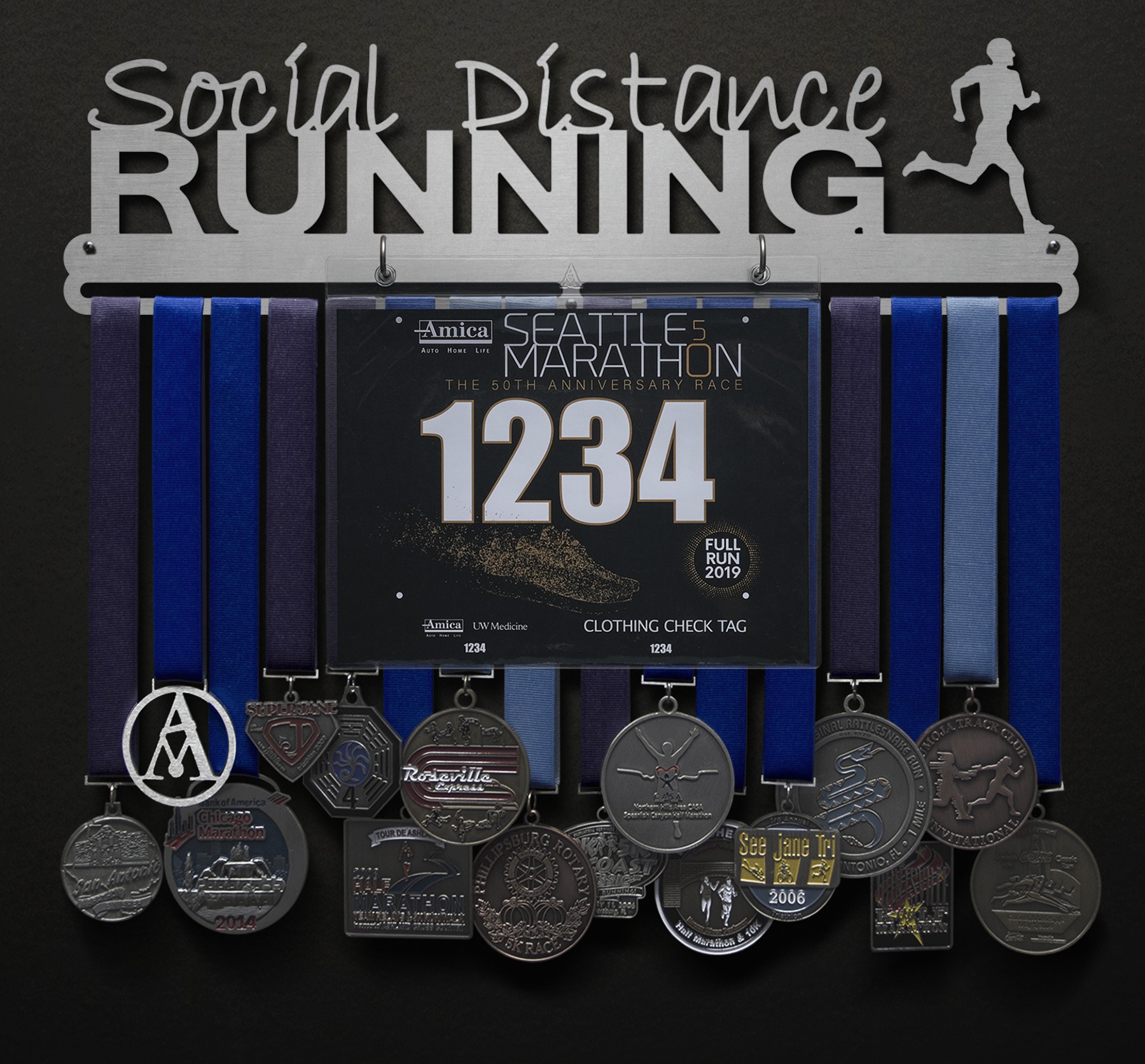 Who says social distancing means being lazy? Not you. Show off all of your virtual marathon medals with a brand new Social Distancing medal display!