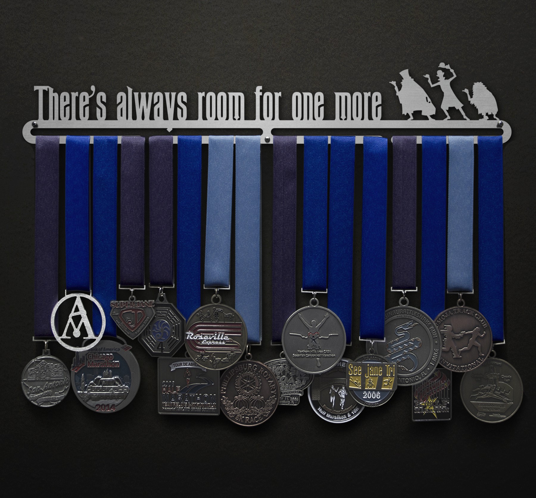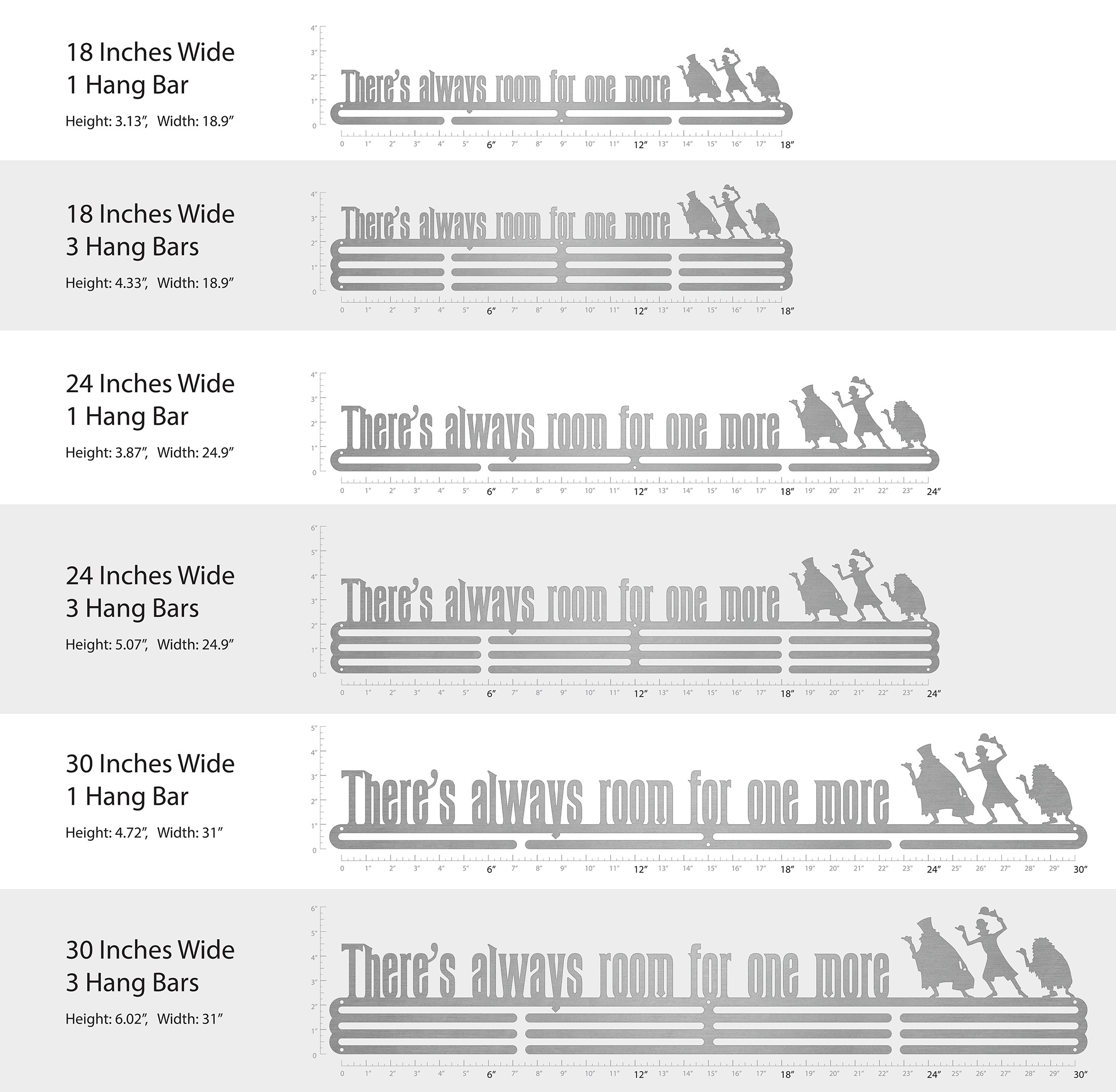 Unsure what size to get? We have created two consistently scaled images to show you what different sized displays look like when filled with medals.