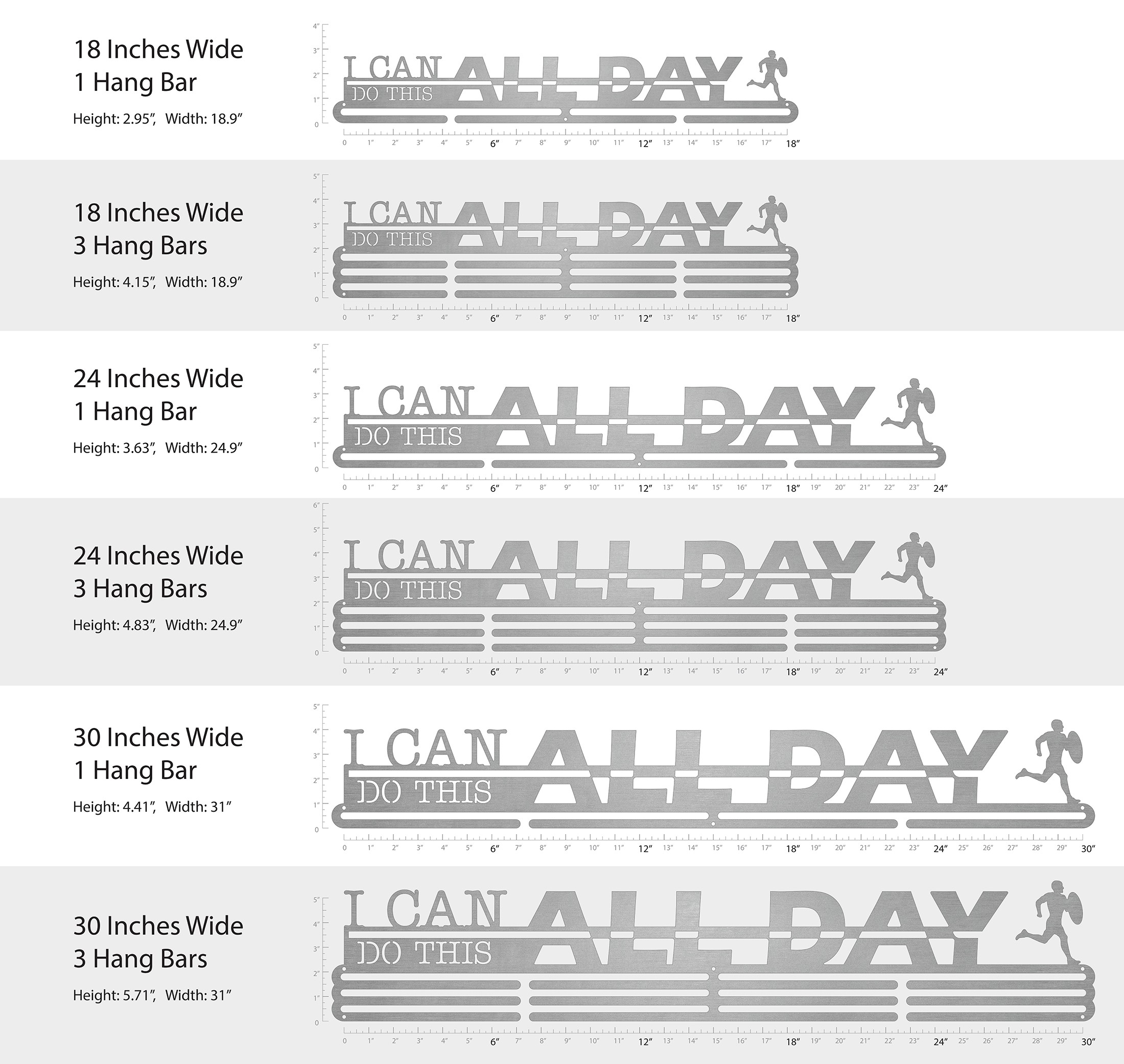 Unsure what size to get? We have created two consistently scaled images to show you what different sized displays look like when filled with medals.