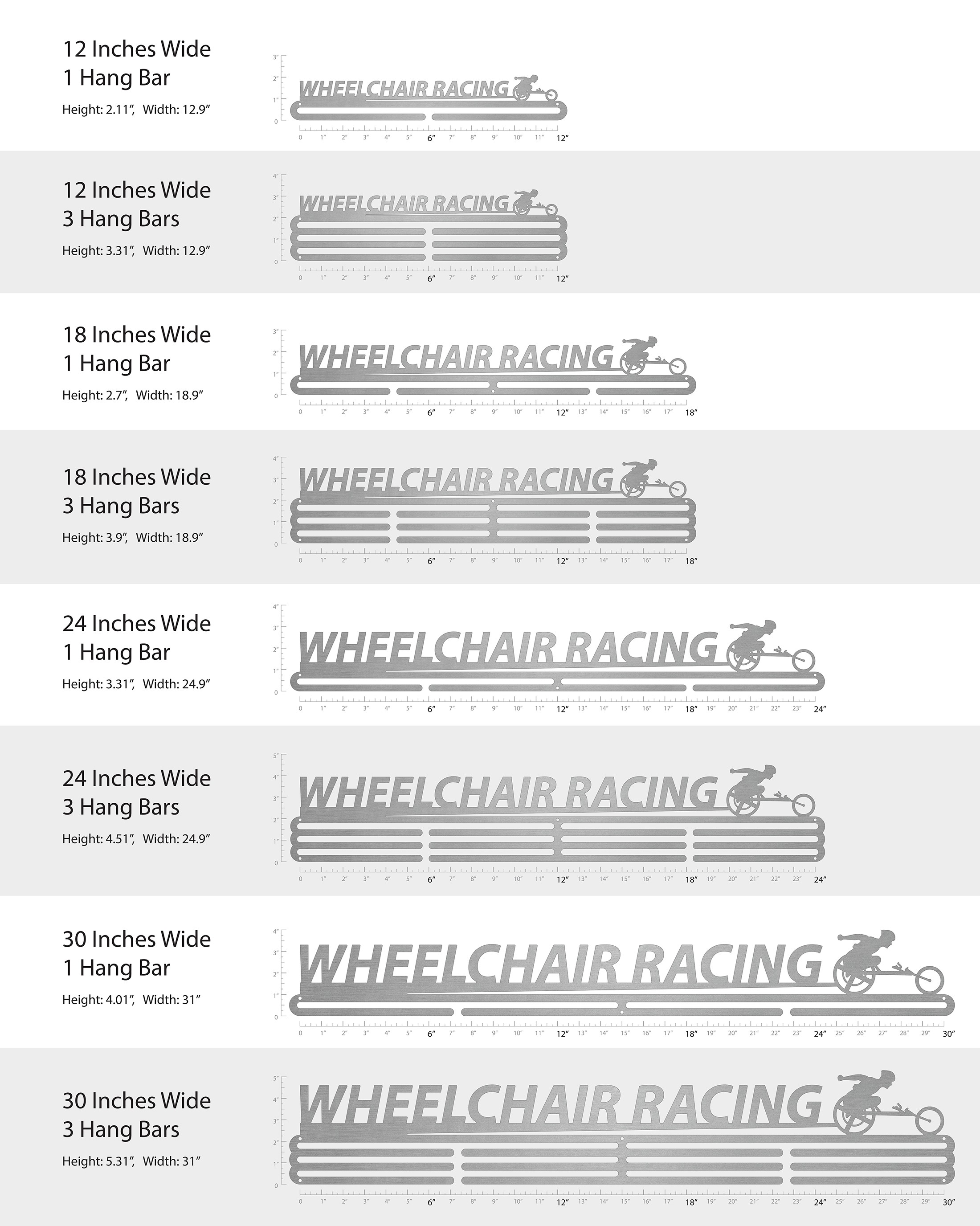 Unsure what size to get? We have created two consistently scaled images to show you what different sized displays look like when filled with medals.