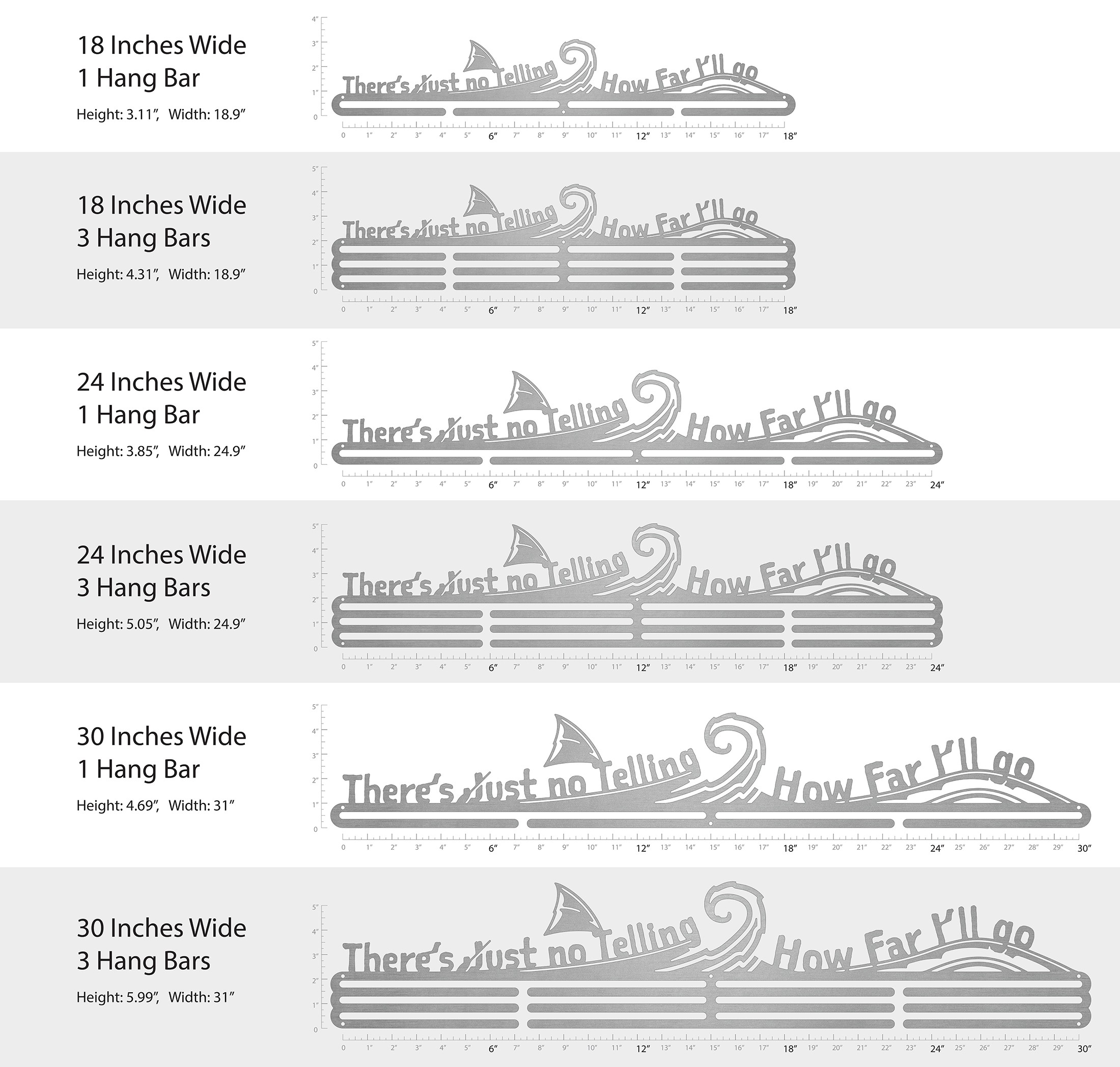 Unsure what size to get? We have created two consistently scaled images to show you what different sized displays look like when filled with medals.