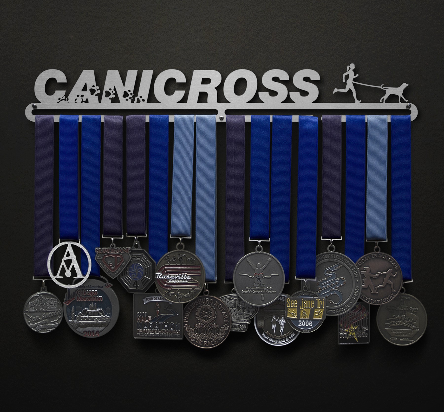 Unsure what size to get? We have created two consistently scaled images to show you what different sized displays look like when filled with medals.