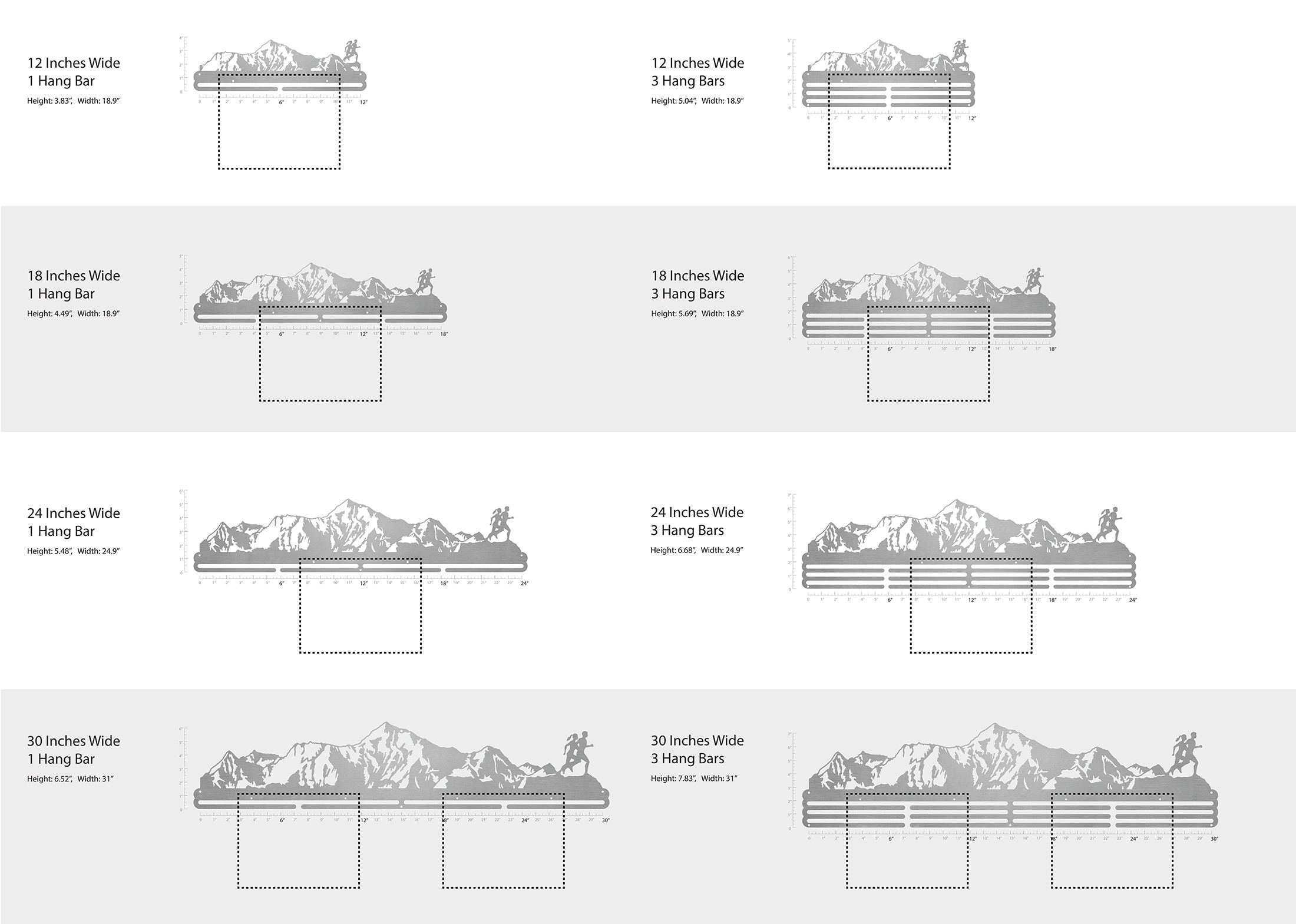 Unsure what size to get? We have created two consistently scaled images to show you what different sized displays look like when filled with medals.