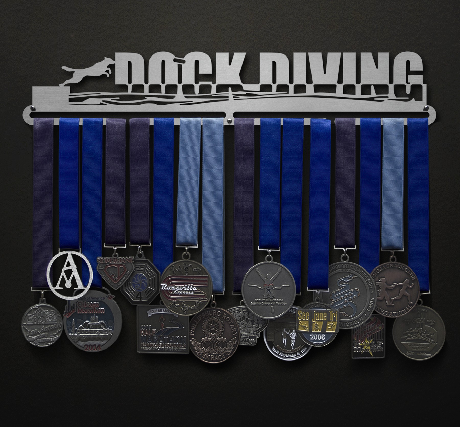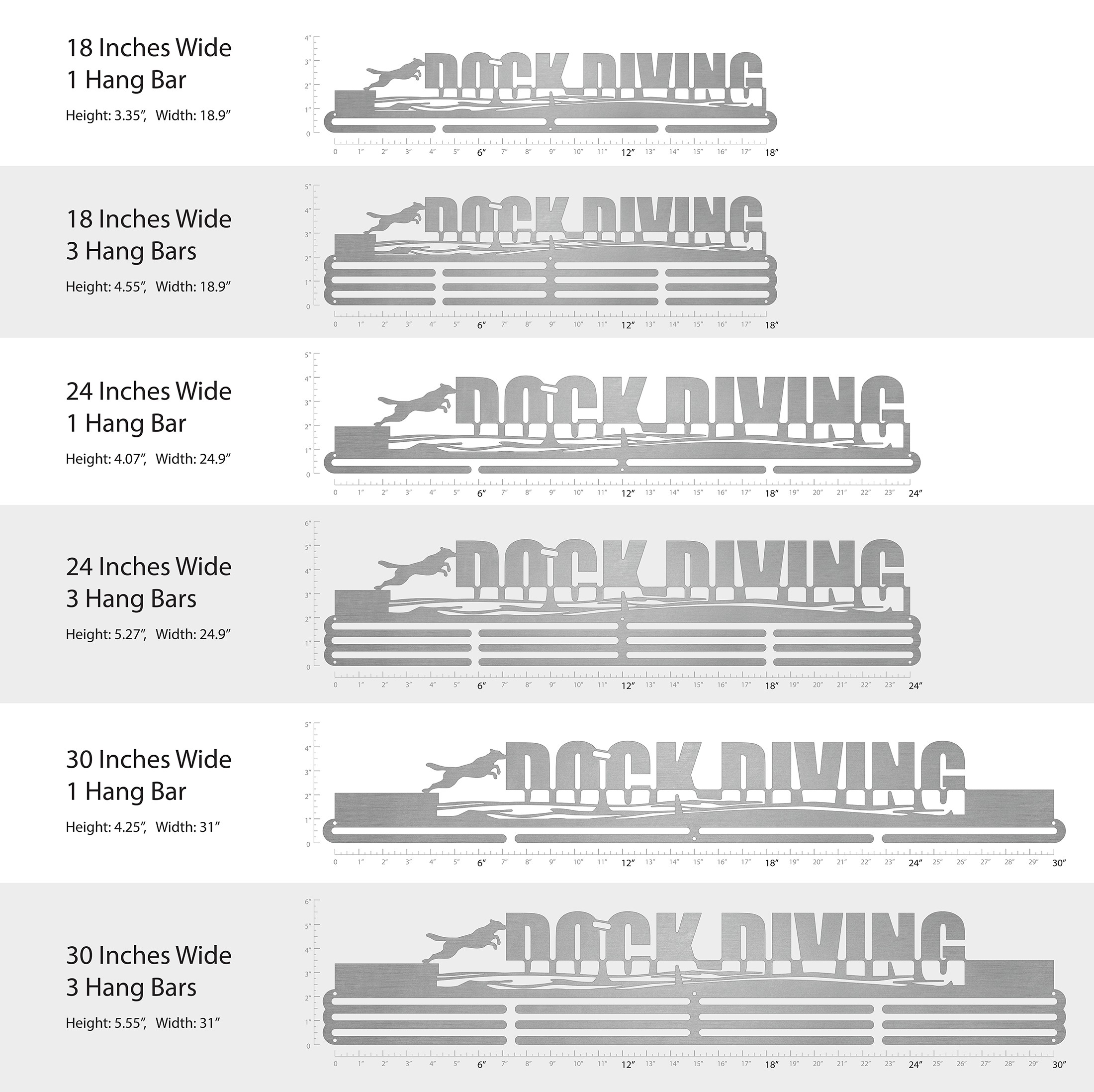Unsure what size to get? We have created two consistently scaled images to show you what different sized displays look like when filled with medals.