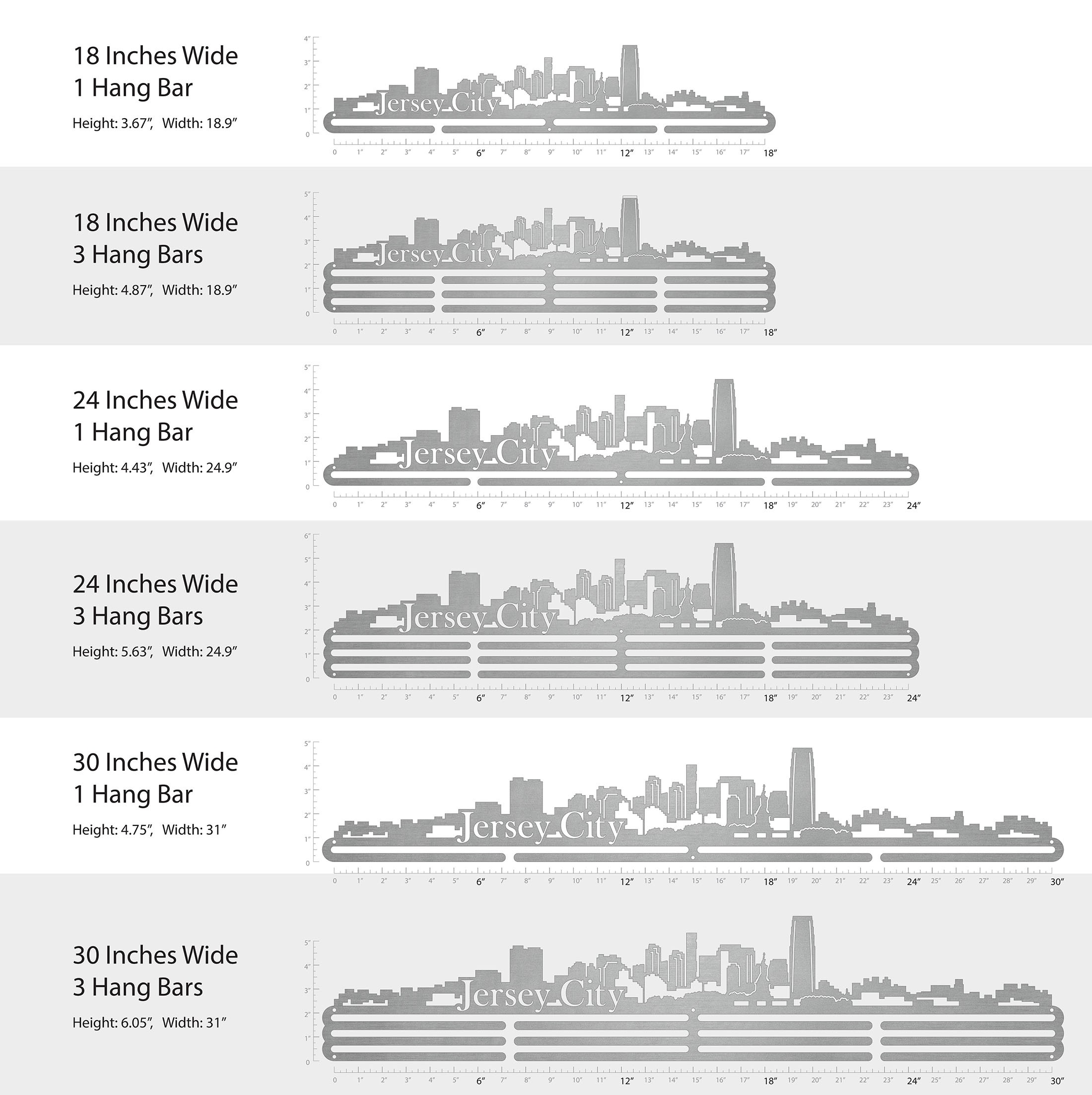 Unsure what size to get? We have created two consistently scaled images to show you what different sized displays look like when filled with medals.