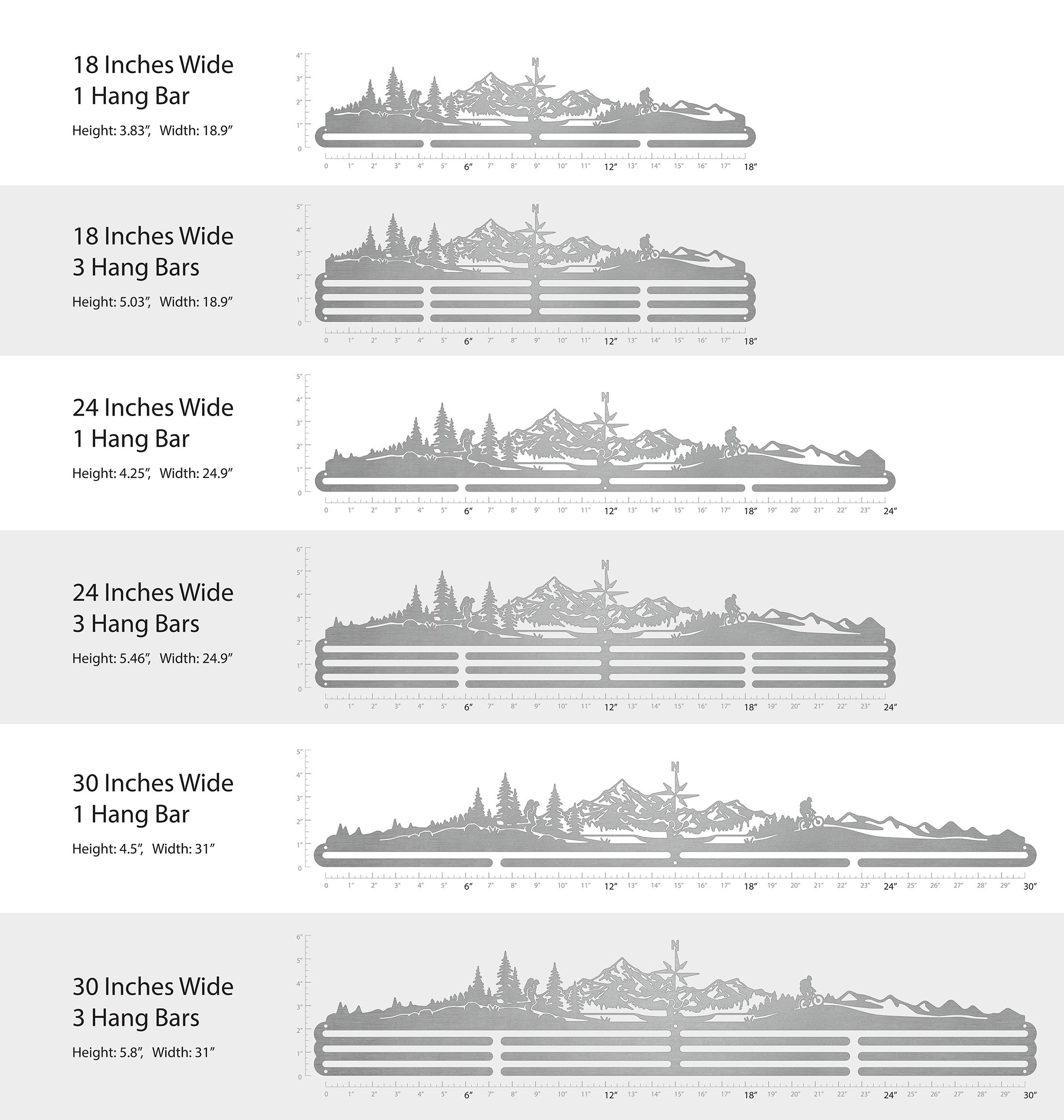 Unsure what size to get? We have created two consistently scaled images to show you what different sized displays look like when filled with medals.