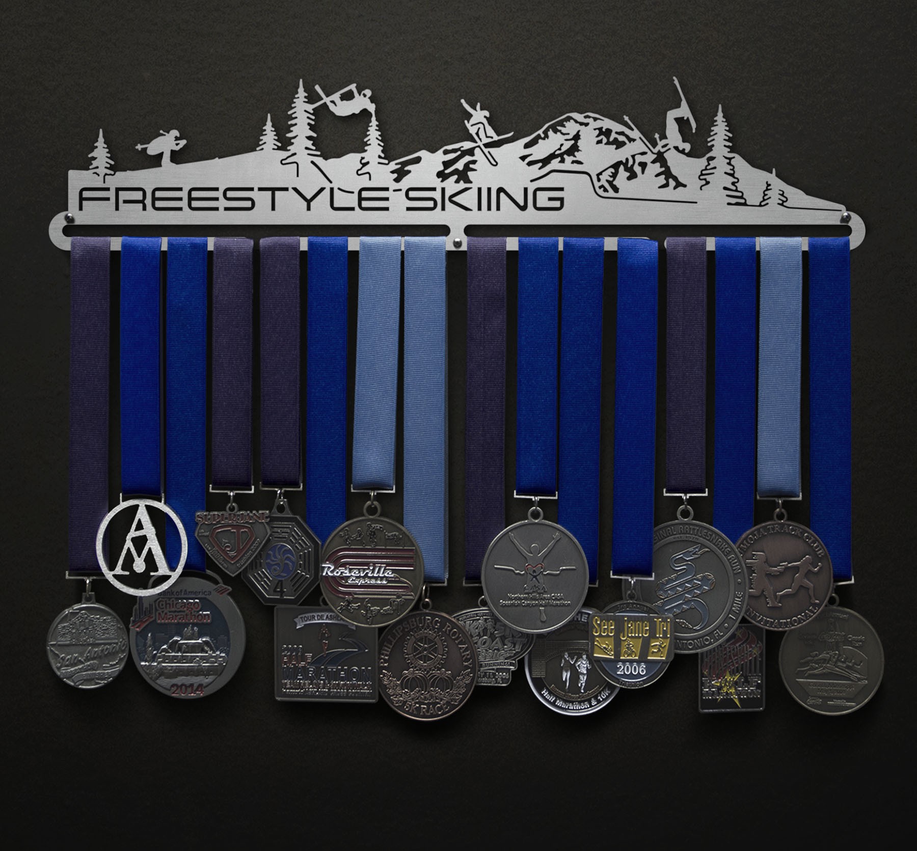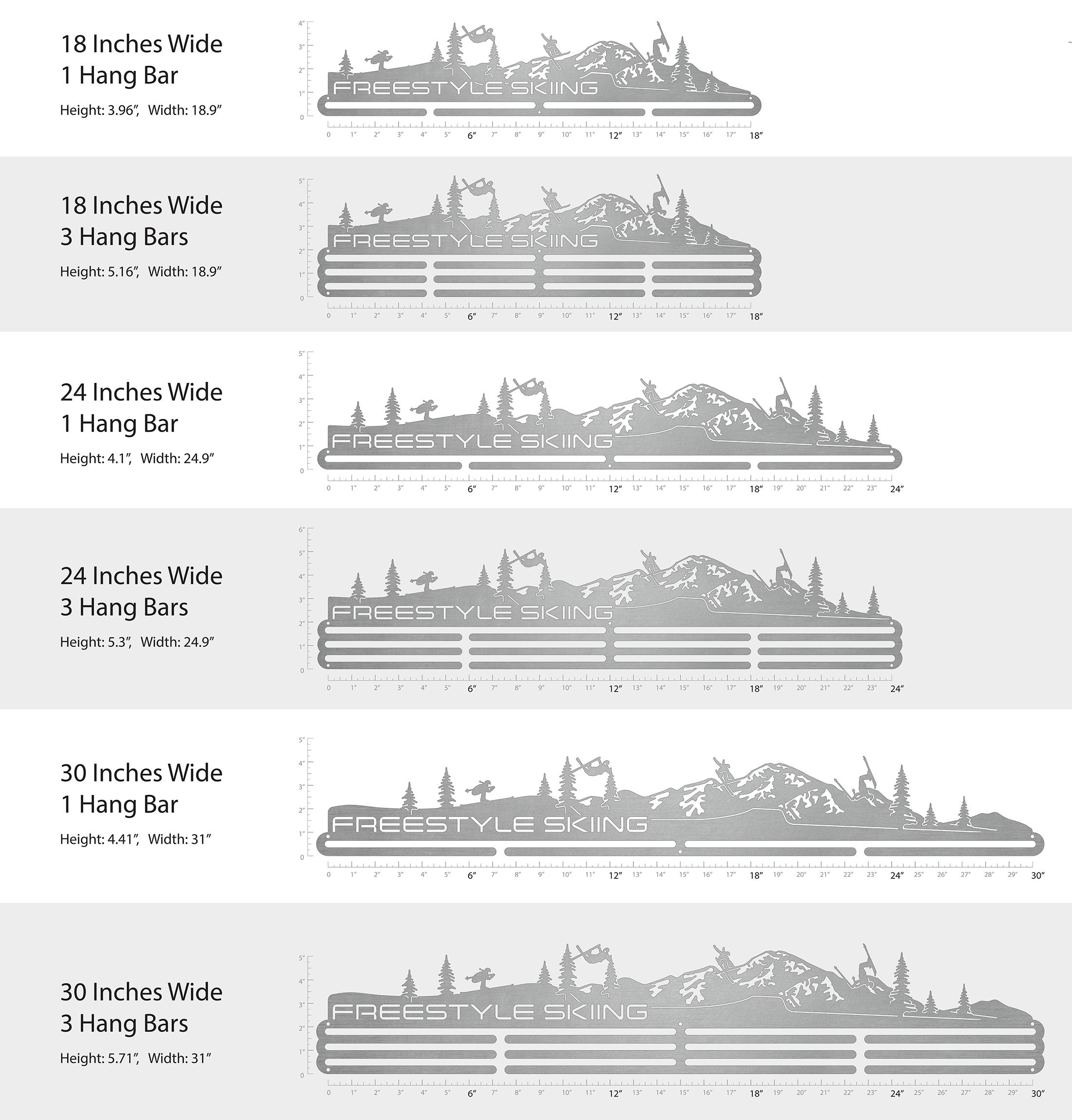 Unsure what size to get? We have created two consistently scaled images to show you what different sized displays look like when filled with medals.