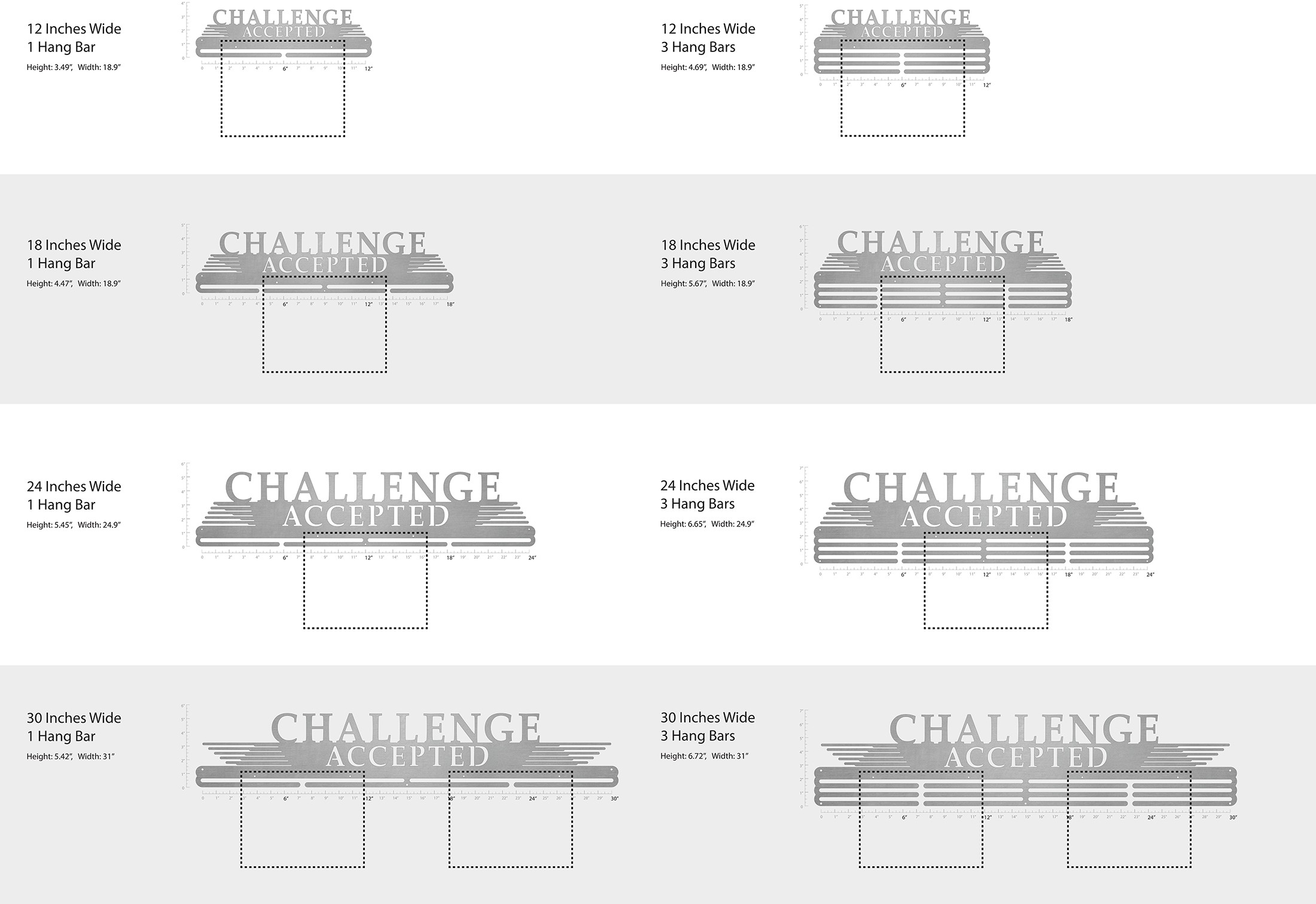 Unsure what size to get? We have created two consistently scaled images to show you what different sized displays look like when filled with medals.