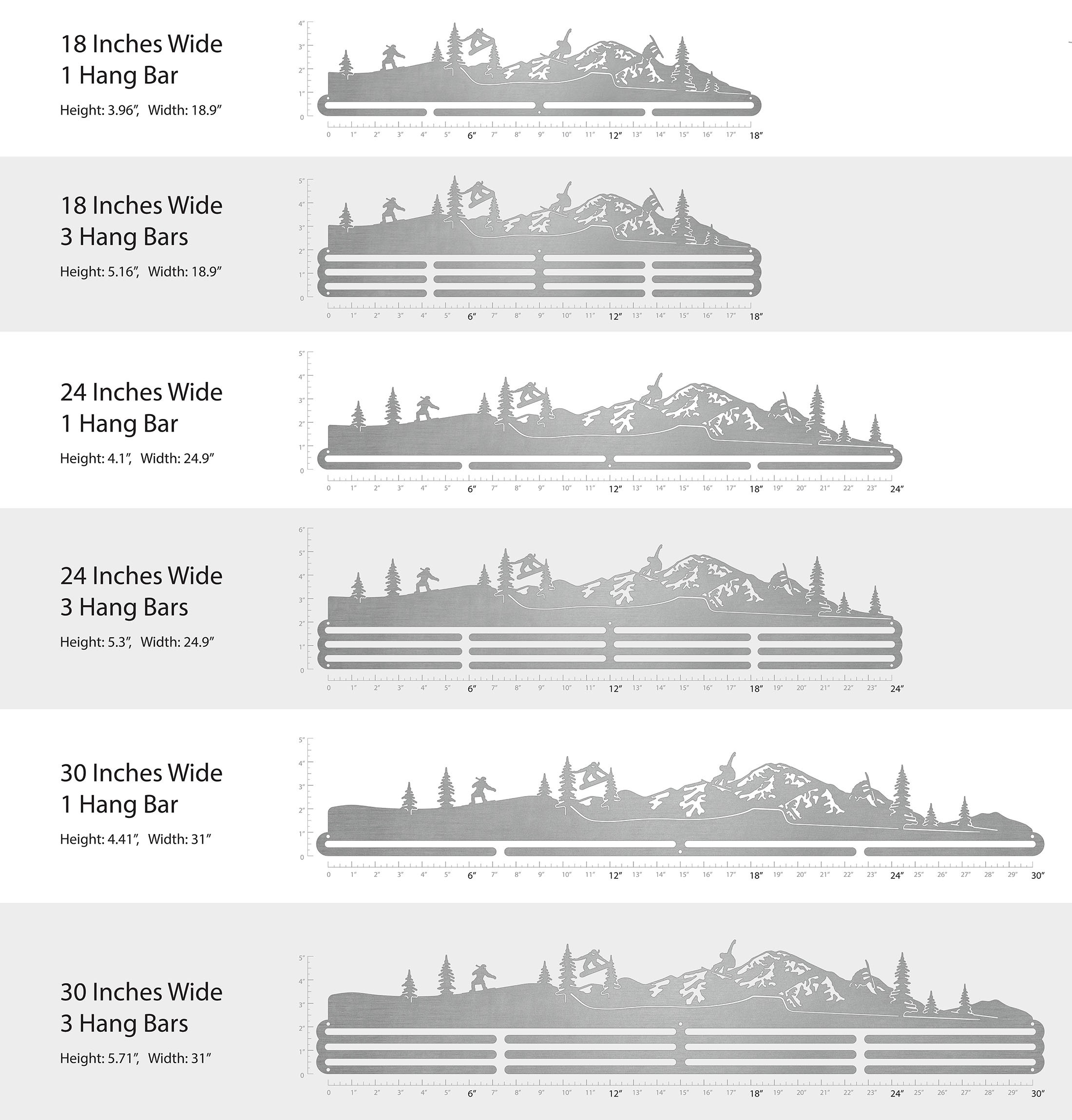 Unsure what size to get? We have created two consistently scaled images to show you what different sized displays look like when filled with medals.