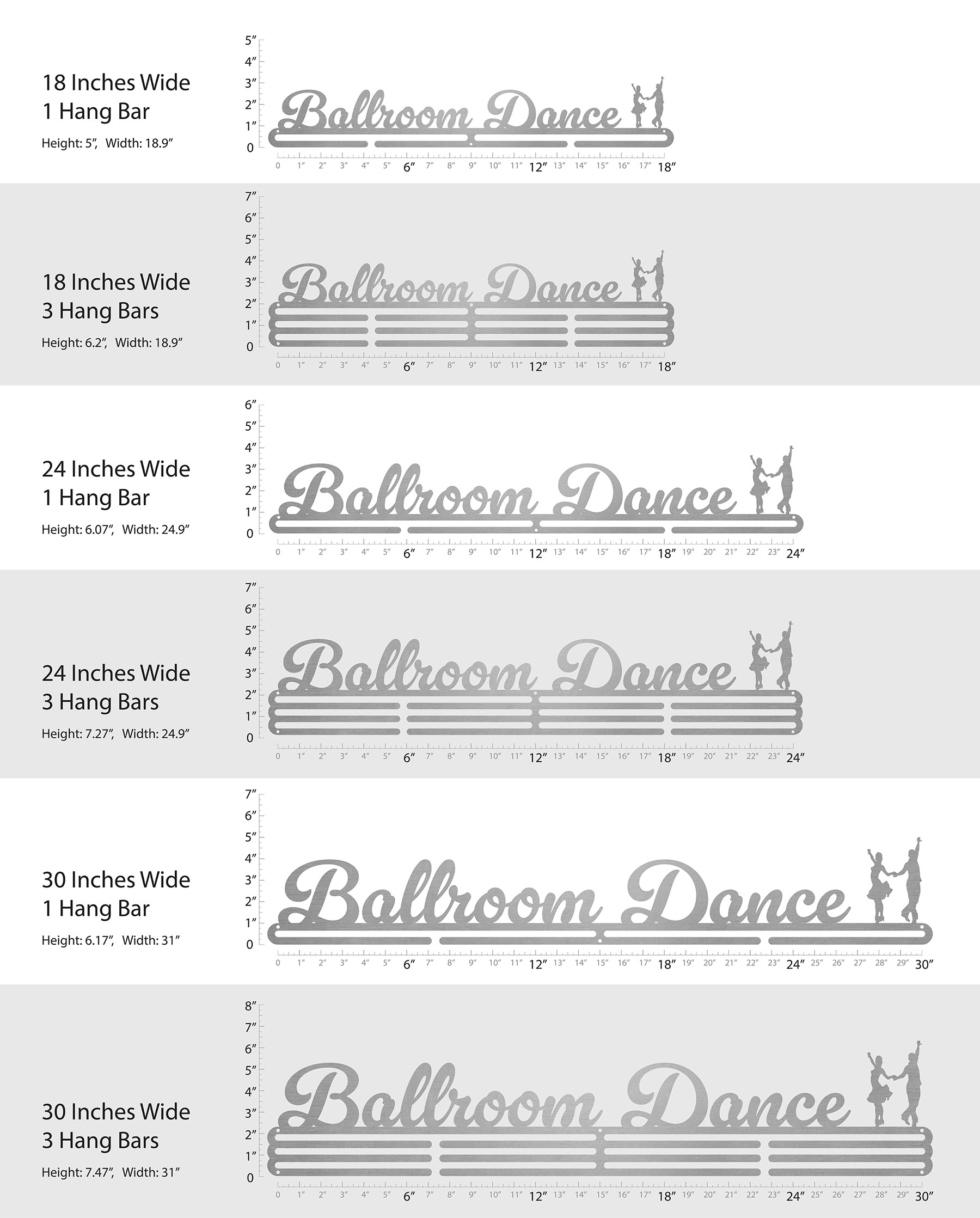 Don't be one of the fantastic ballroom dancing athletes that work so hard for their award medals only to throw them in a pile at the bottom of a drawer! Every time you walk by this medal hanger you will be reminded of all your hard work and dedication that got you this far, which will keep you focused and give you the extra motivation you need to keep moving forward!