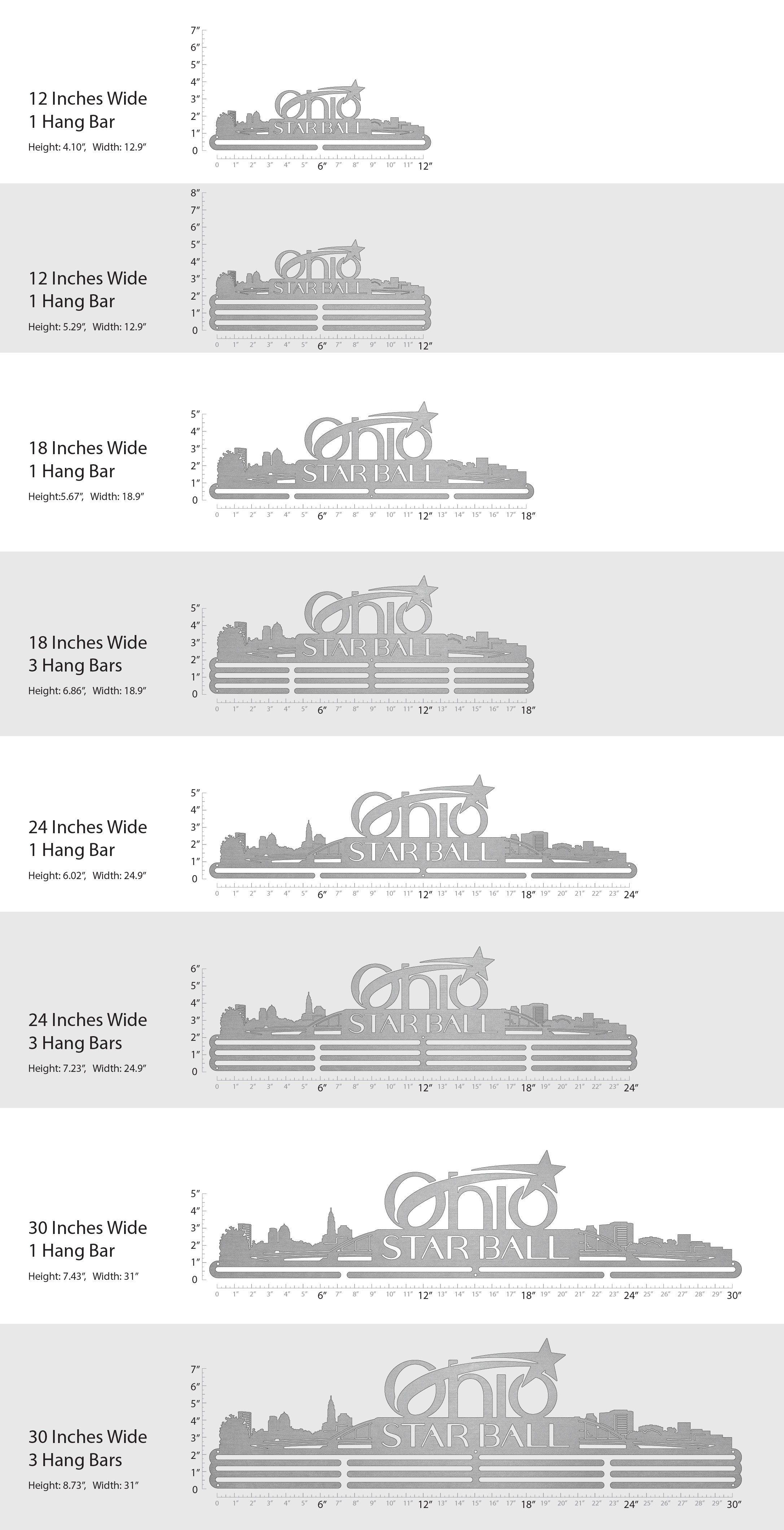 Unsure what size to get? We have created two consistently scaled images to show you what different sized displays look like when filled with medals.