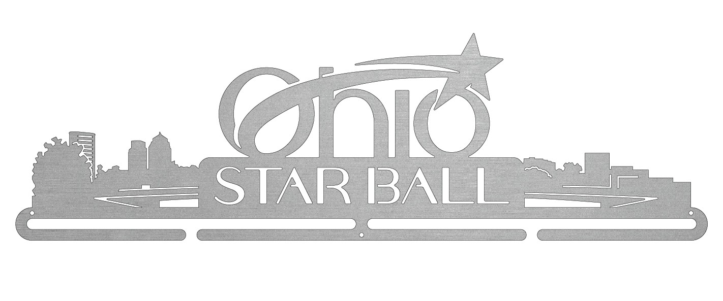 The Ohio Star Ball logo, flanked with iconic representations of the city of Columbus.