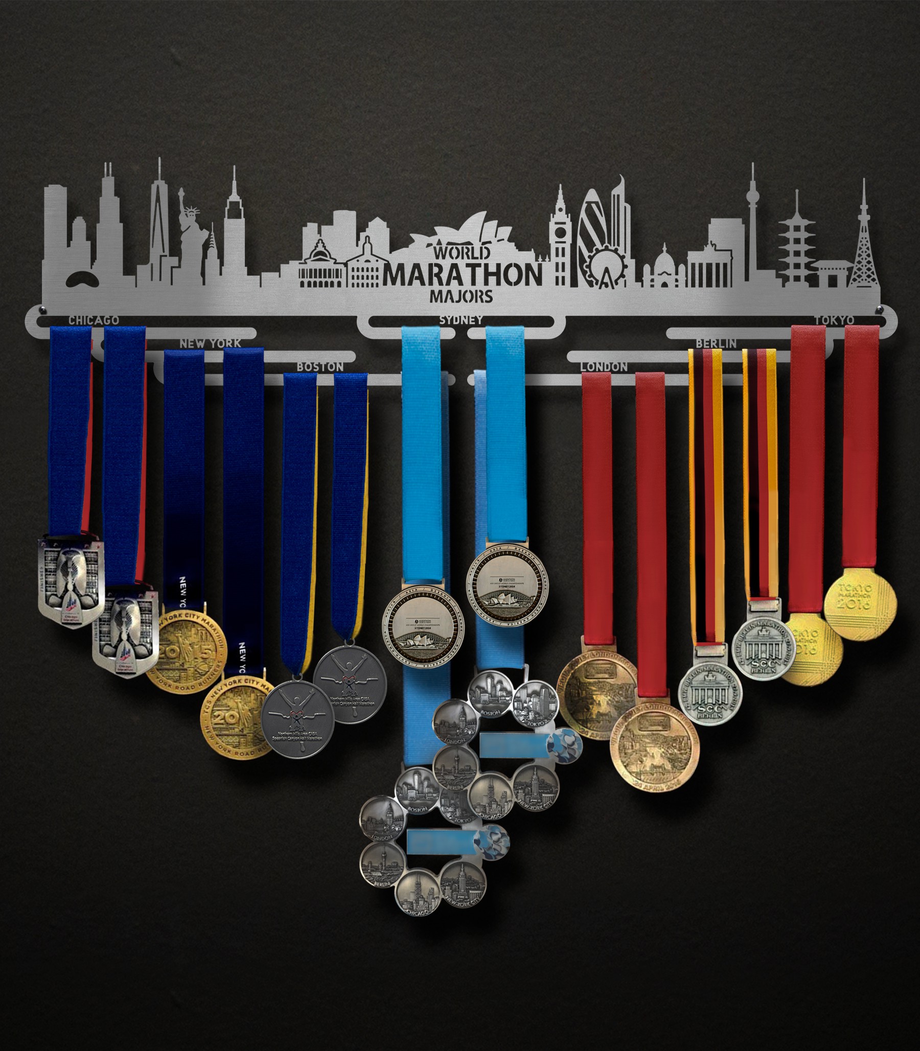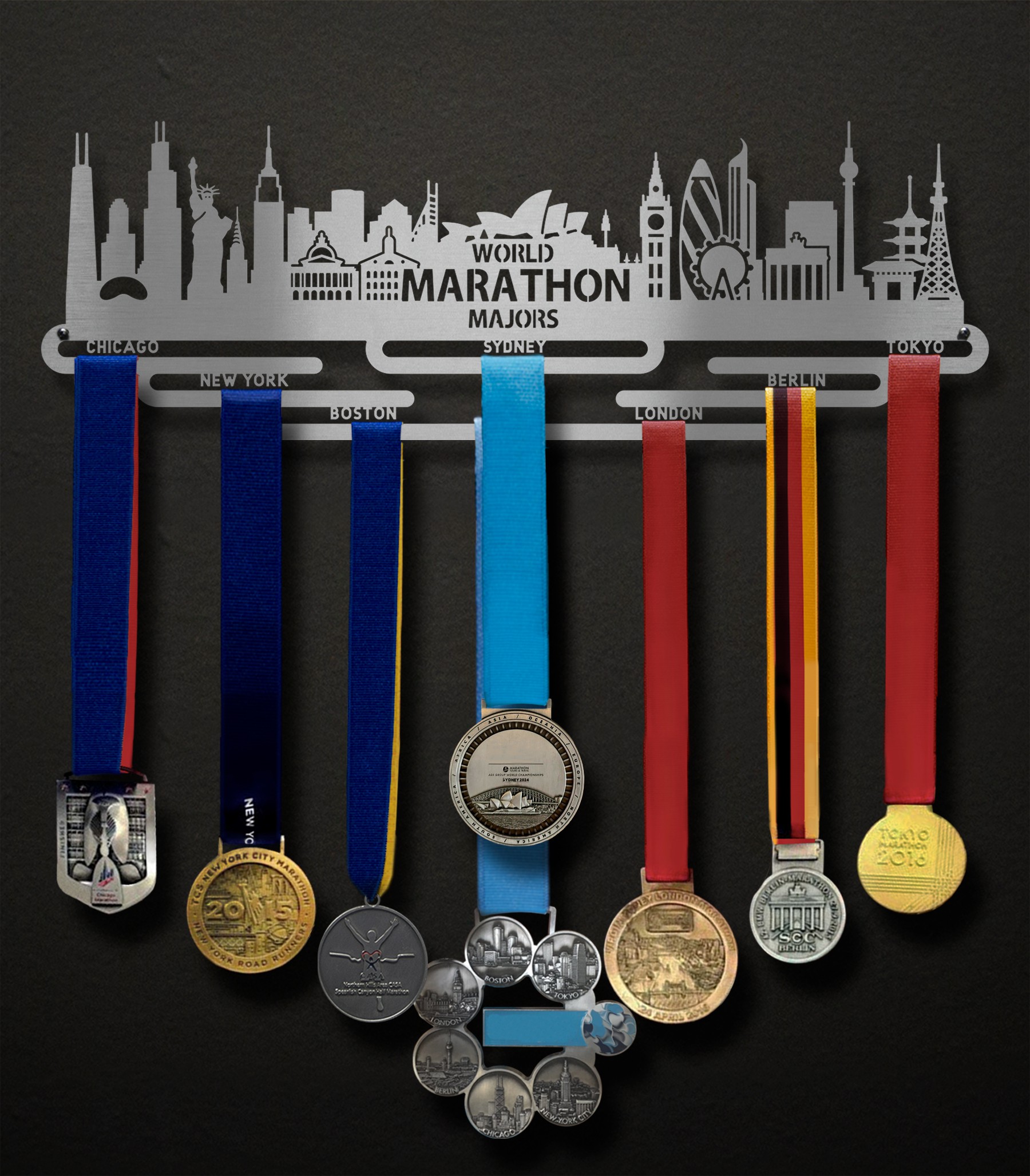 World Marathon Majors - Sydney Cityscape Edition is an update of our best selling design of 2023! We've included iconic buildings and imagery from each stop on the tour, including the new Sydney leg, so you can commemorate your achievement with reminders of the journey along the way. We're so proud of this community for taking on such a monumental challenge! Now it's time to display your medals with pride.