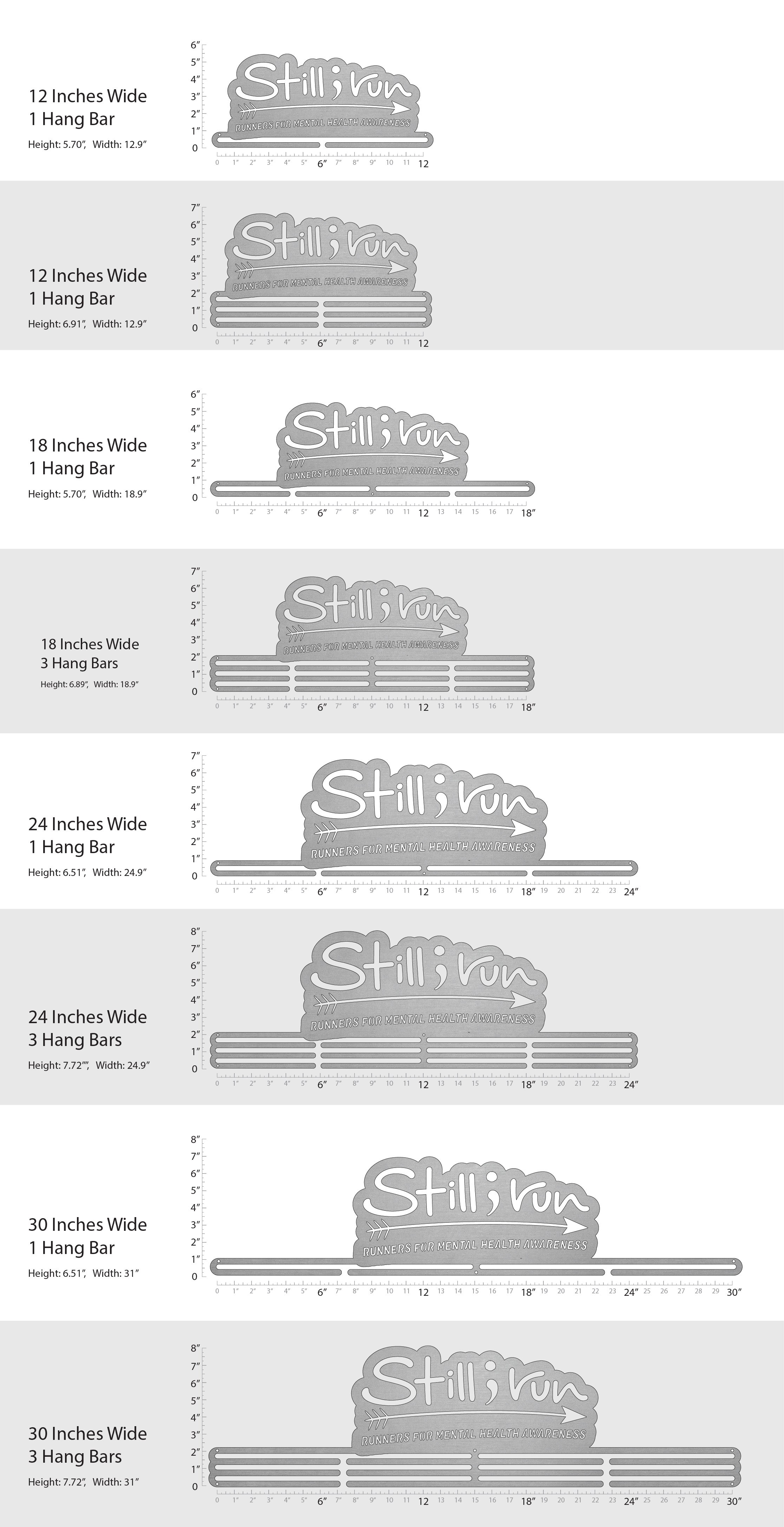 Unsure what size to get? We have created two consistently scaled images to show you what different sized displays look like when filled with medals.
