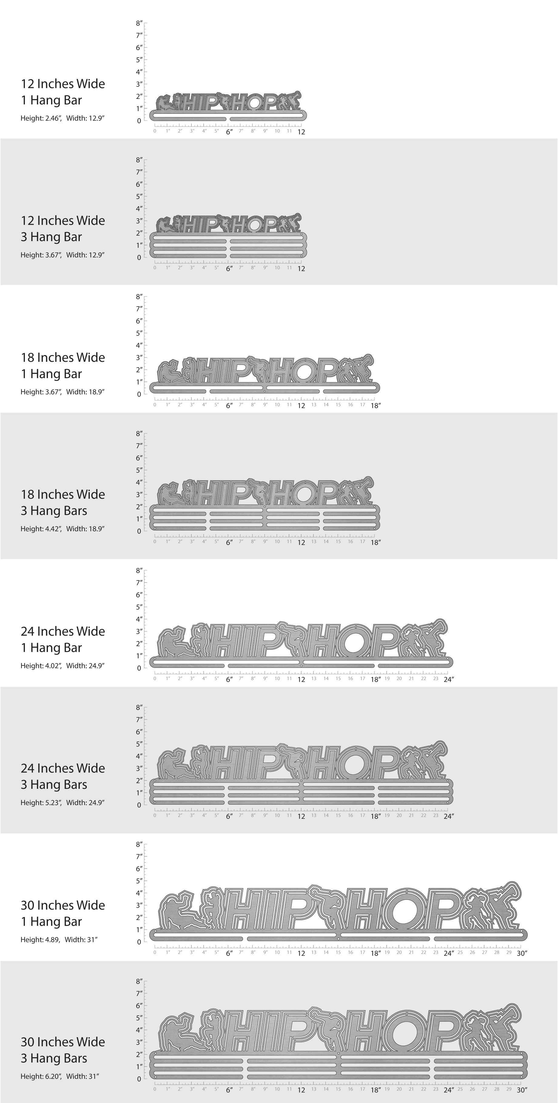 Unsure what size to get? We have created two consistently scaled images to show you what different sized displays look like when filled with medals.