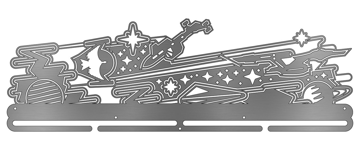 A stylized cosmic horizon bib and medal display inspired by deep-space exploration, starships, and iconic sci-fi vistas. Designed for anyone who dreams beyond the stars or treks through distant worlds. Beam us up!