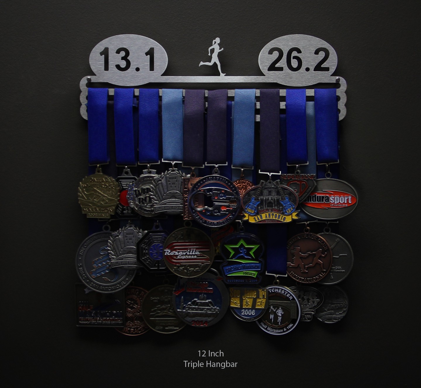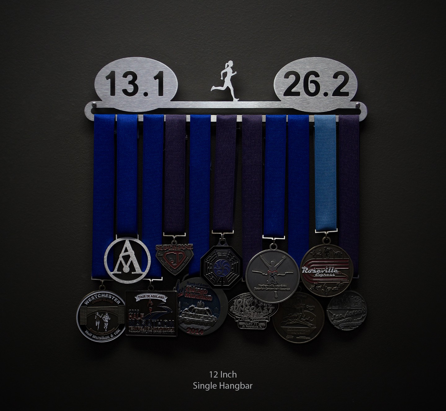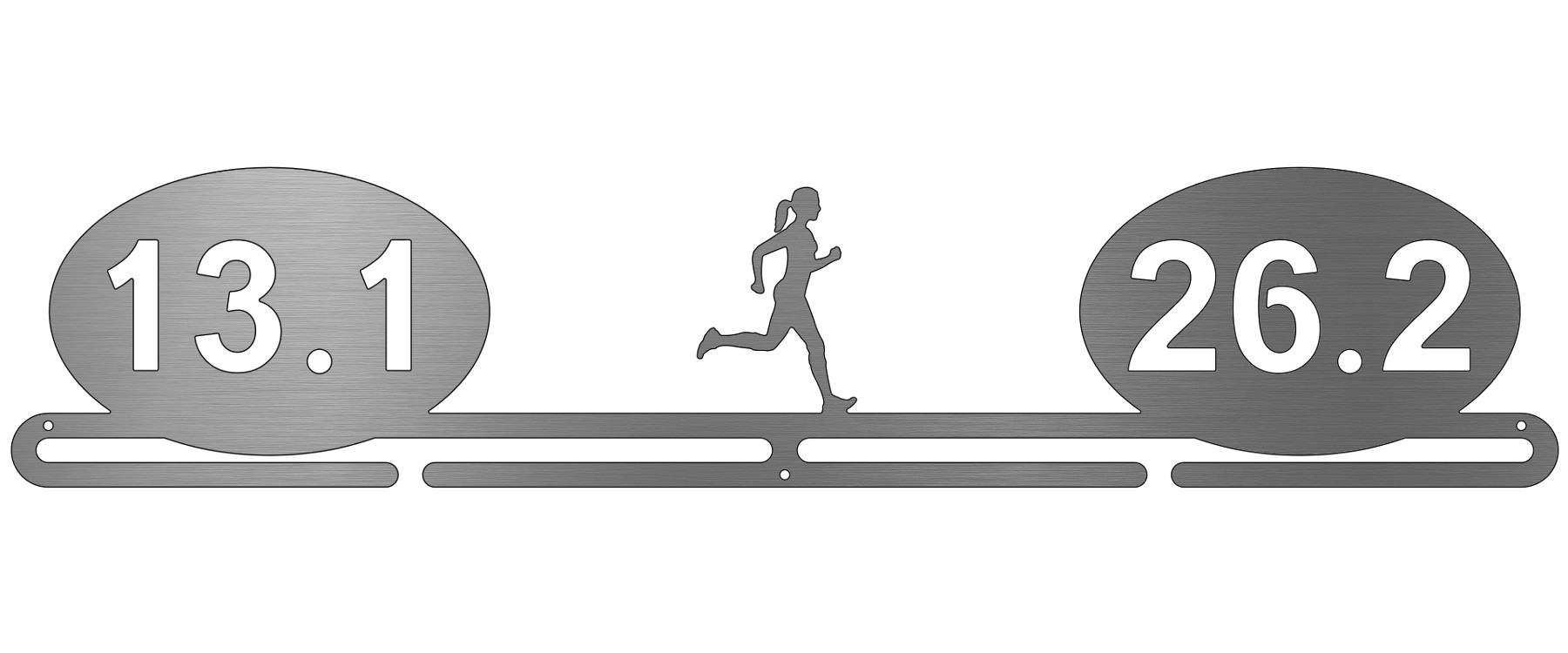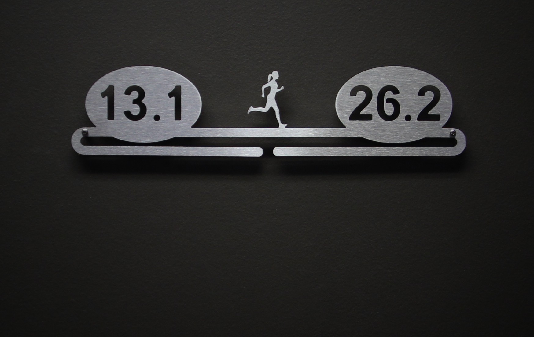For runners with both half and full marathon finisher medals to display! The medal hanger is laser cut from brushed stainless steel for a look as elegant as you are determined.