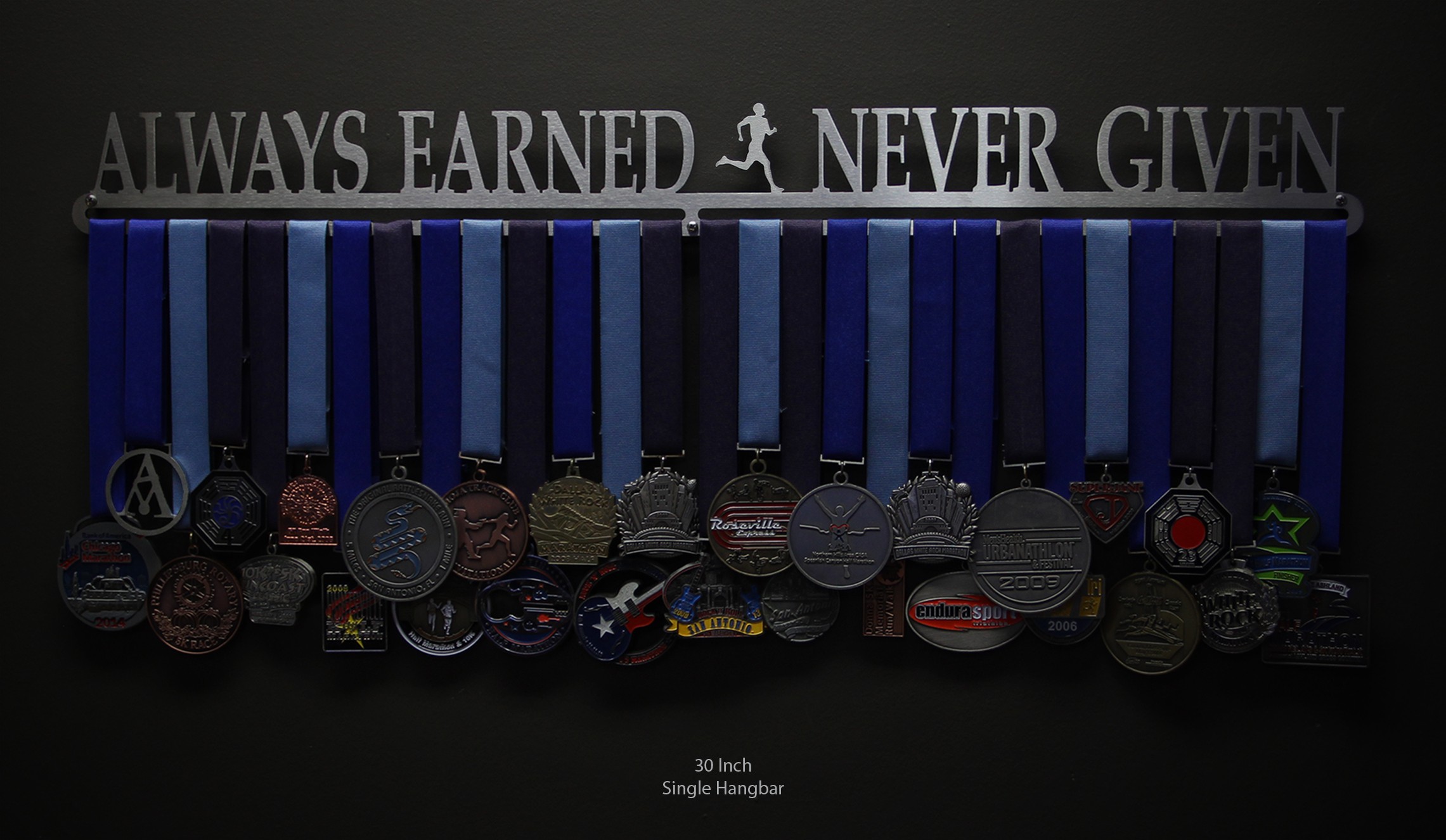 Anything you accomplish is accomplished by YOU. No one else can do it for you. Whether you're faced with a tough game, grueling race, or long distance marathon, you can never expect to be given anything. Think of your medals as badges of courage, strength and determination. Then display them loud and proud with this laser cut brushed stainless steel medal display. This hanger is only for medals you have earned - never for given ones.