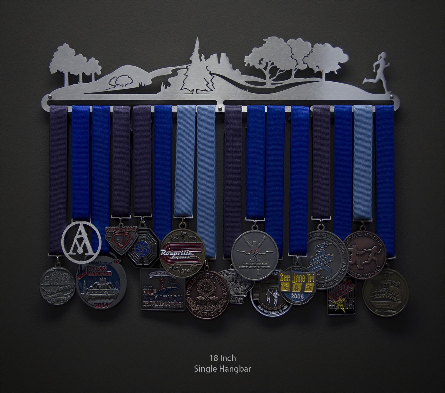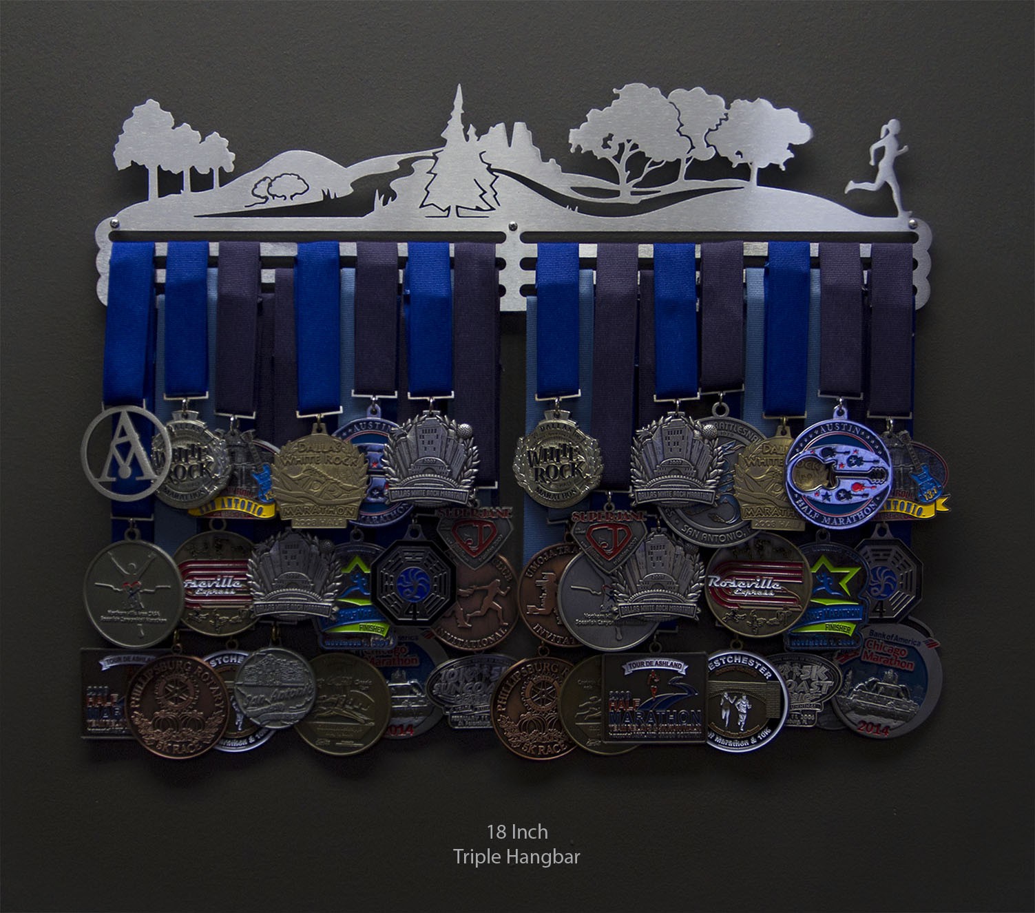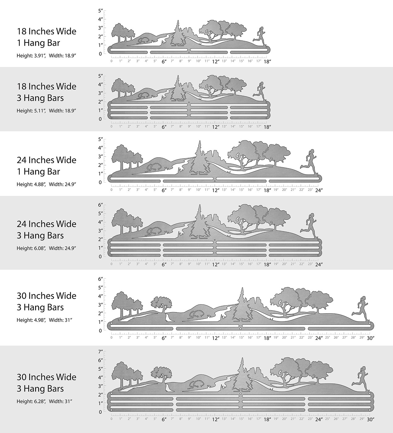 Unsure what size to get? We have created two consistently scaled images to show you what different sized displays look like when filled with medals.