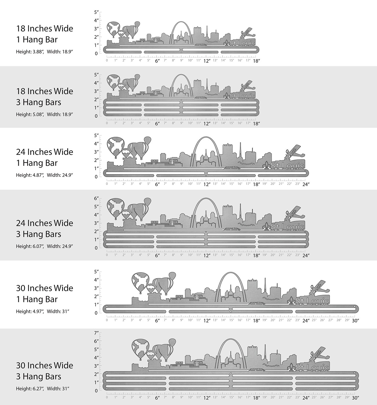 Unsure what size to get? We have created two consistently scaled images to show you what different sized displays look like when filled with medals.