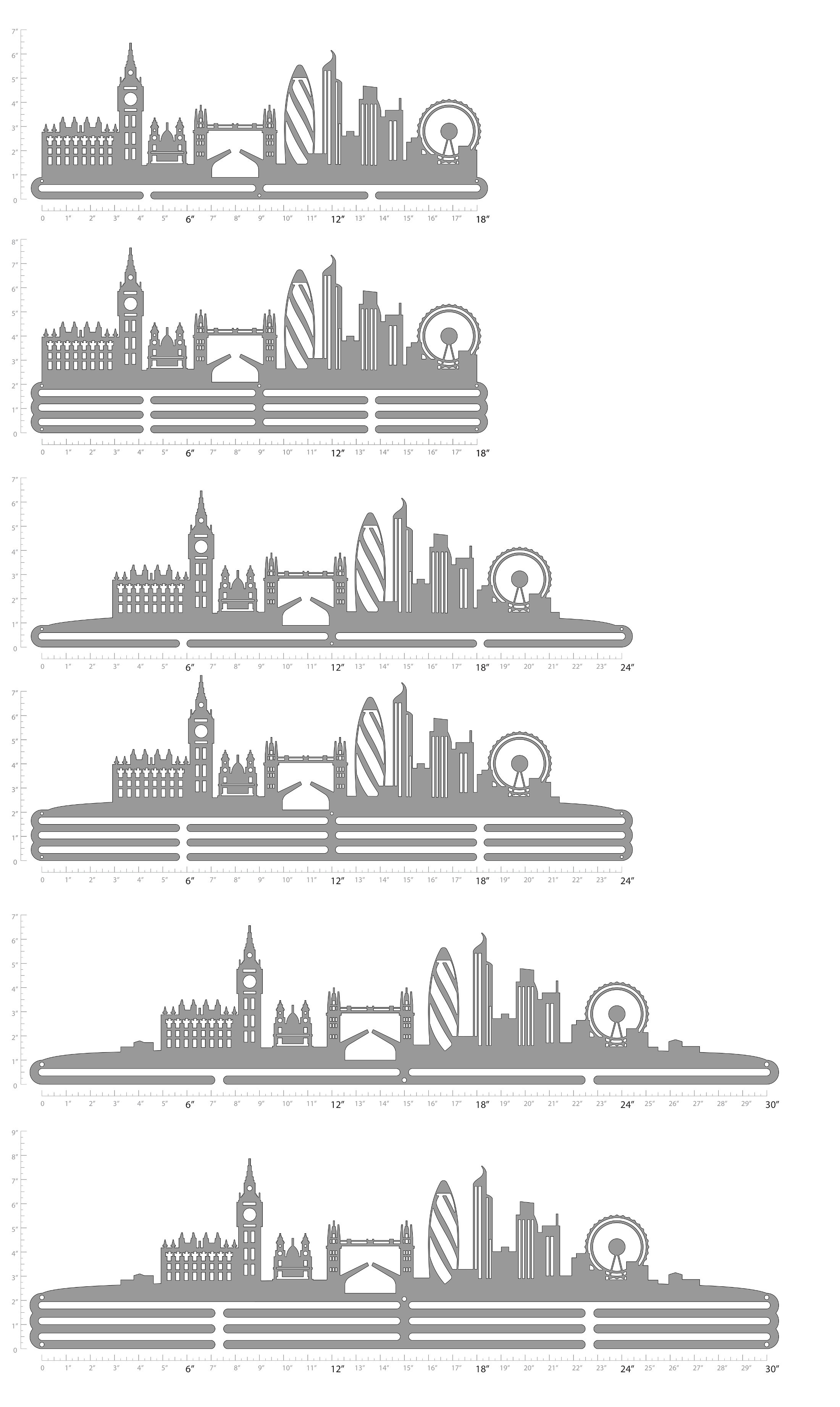Unsure what size to get? We have created two consistently scaled images to show you what different sized displays look like when filled with medals.