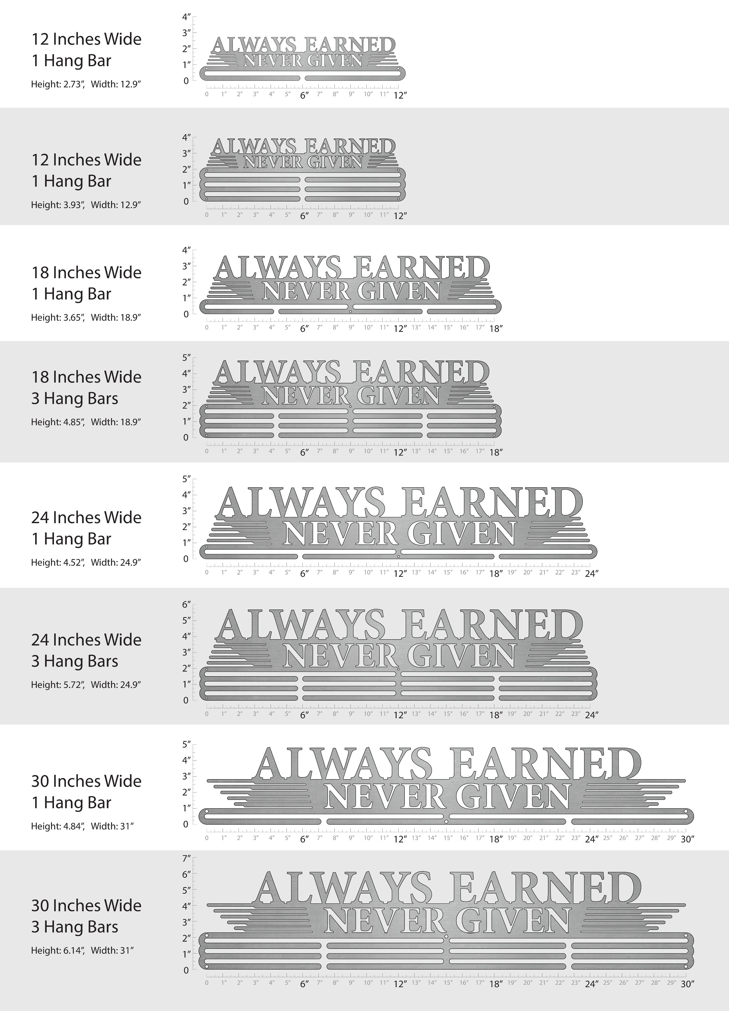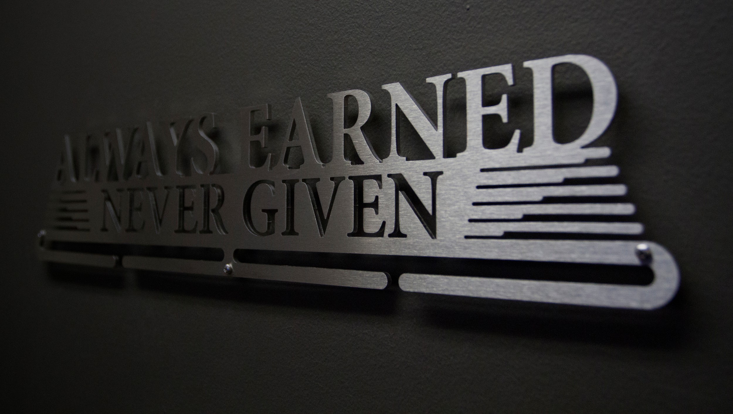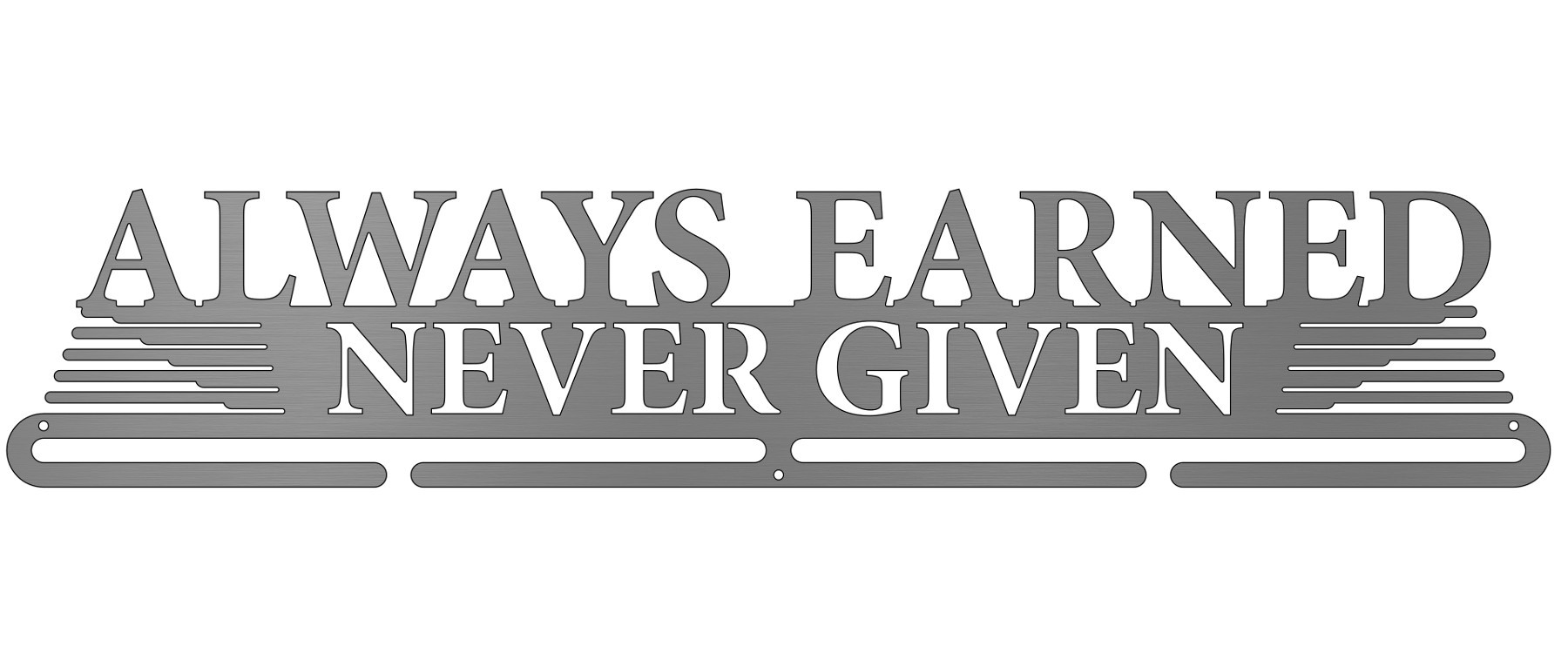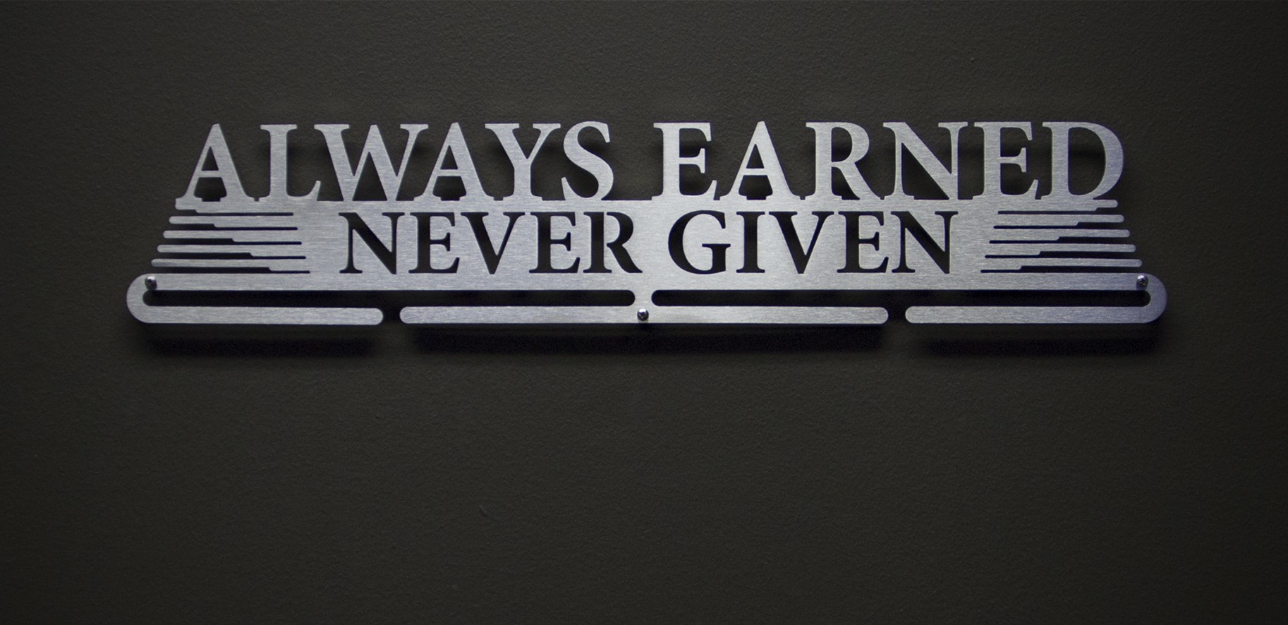 Anything you accomplish is accomplished by YOU. No one else can do it for you. Whether you're faced with a tough game, grueling race, or long distance marathon, you can never expect to be given anything. Think of your medals as badges of courage, strength and determination. Then display them loud and proud with this laser cut stainless steel medal display. This hanger is only for earned medals, never given ones.