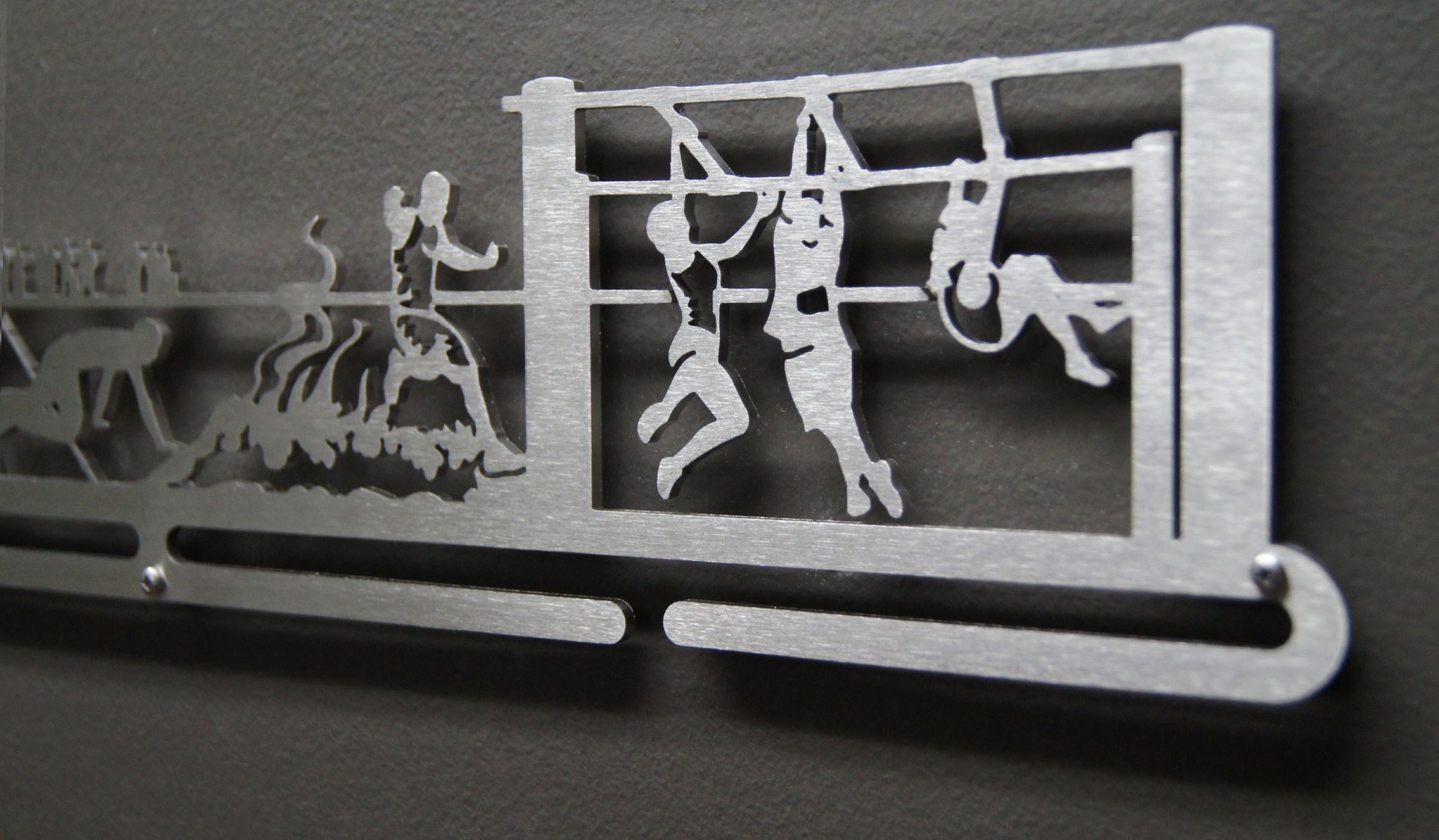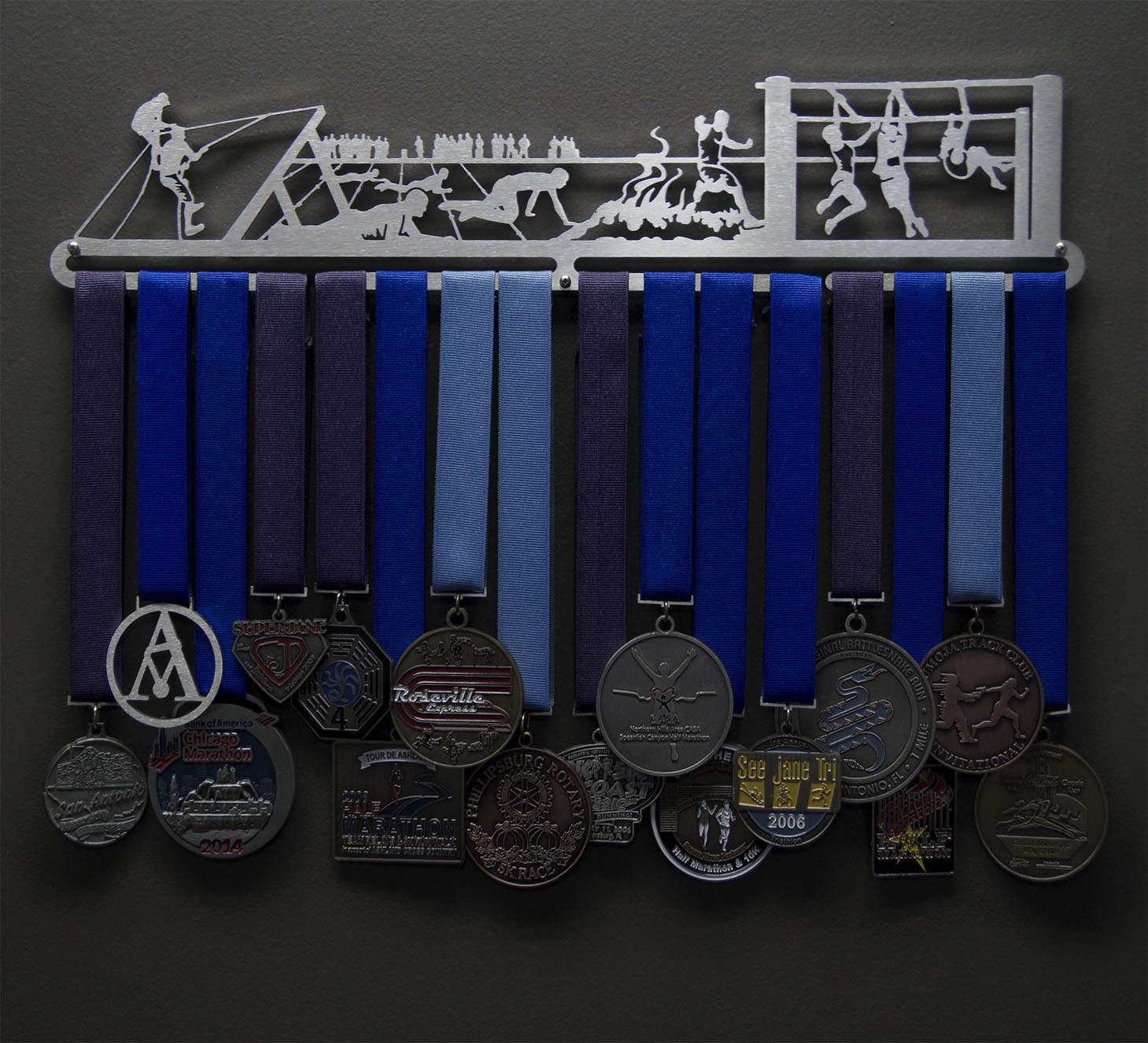 You've ran, jumped, swam, climbed, dashed, swung, and crawled through the flippin' MUD - now all you have to do is showcase your finisher medals, signifying your great feats! What would be better than this gorgeous, brushed stainless steel laser-cut medal display? Perfect for any warrior tough enough to tackle the challenge.
