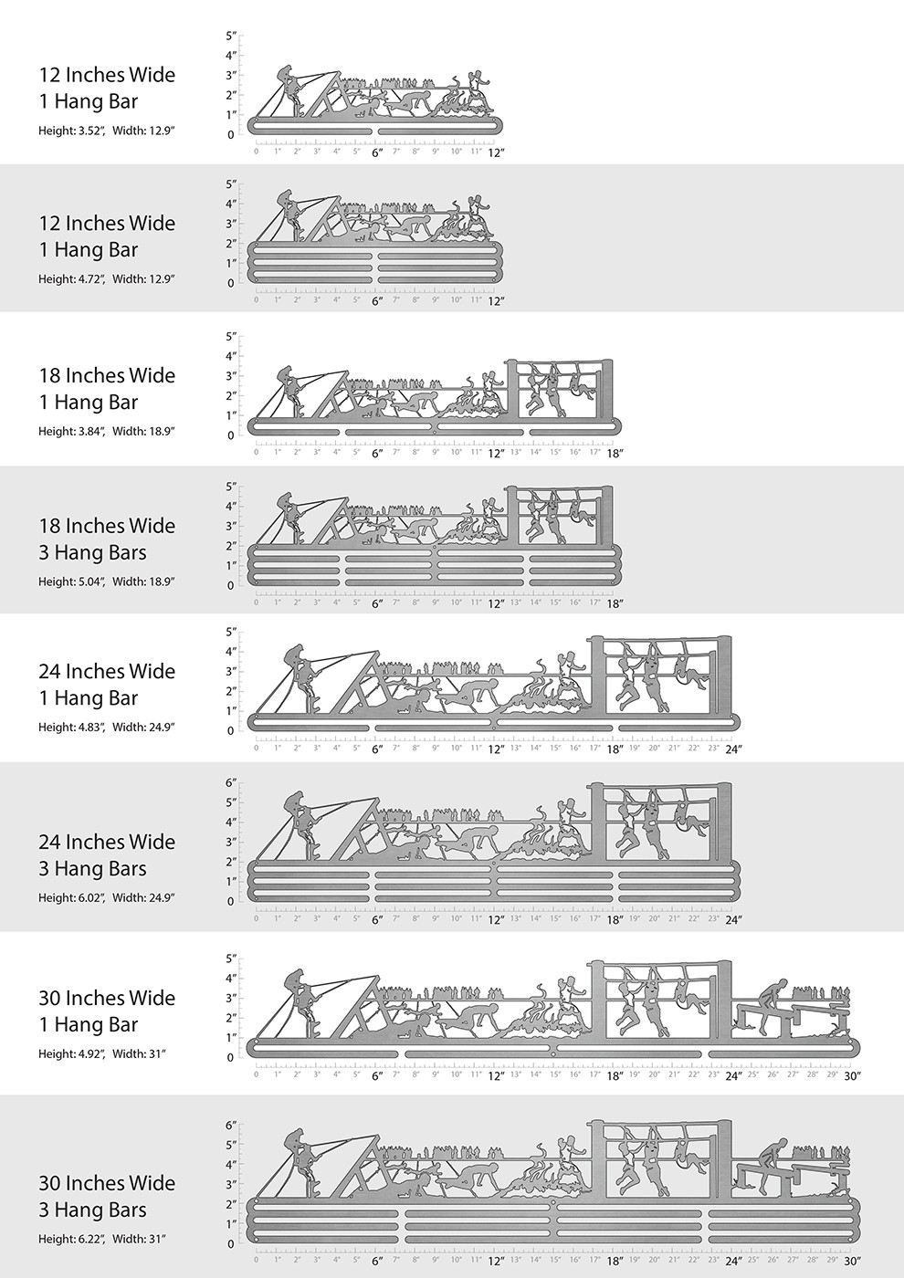 Unsure what size to get? We have created two consistently scaled images to show you what different sized displays look like when filled with medals.