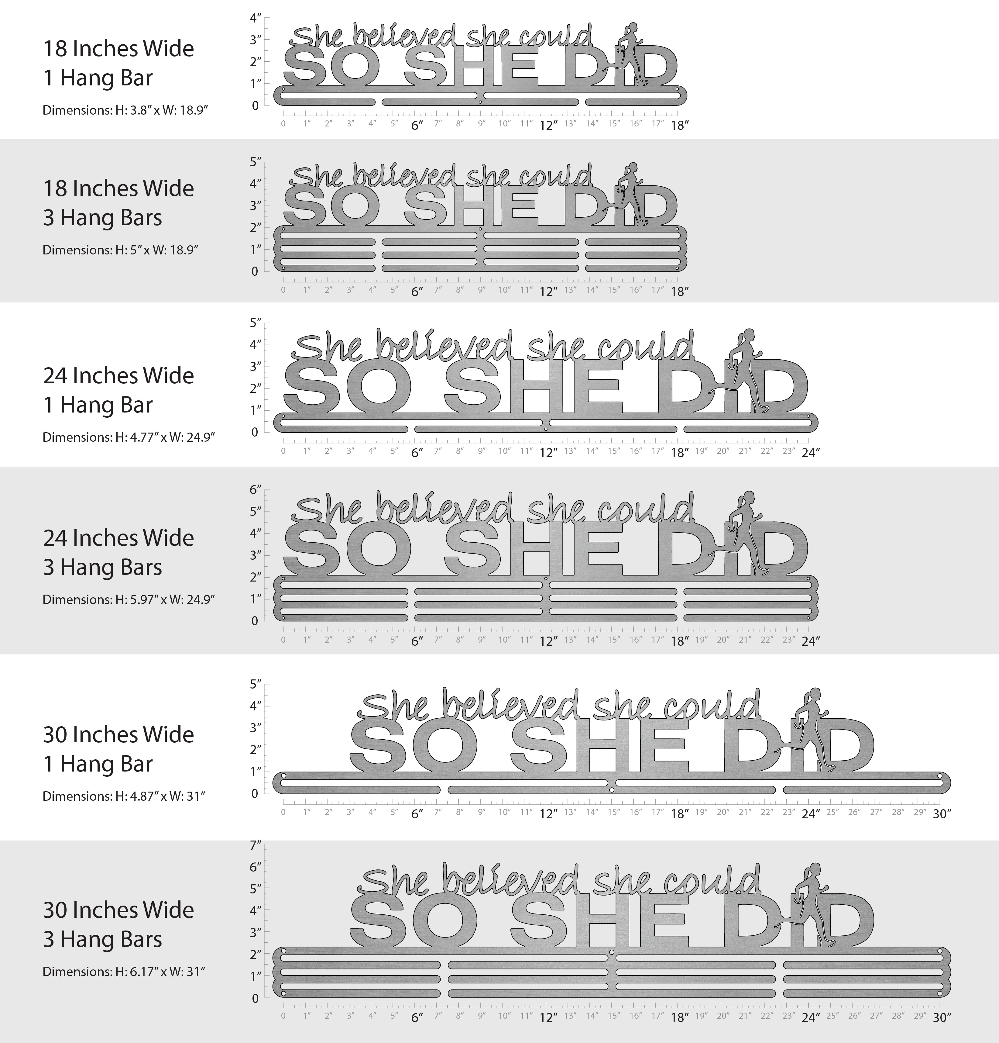 Unsure what size to get? We have created two consistently scaled images to show you what different sized displays look like when filled with medals.
