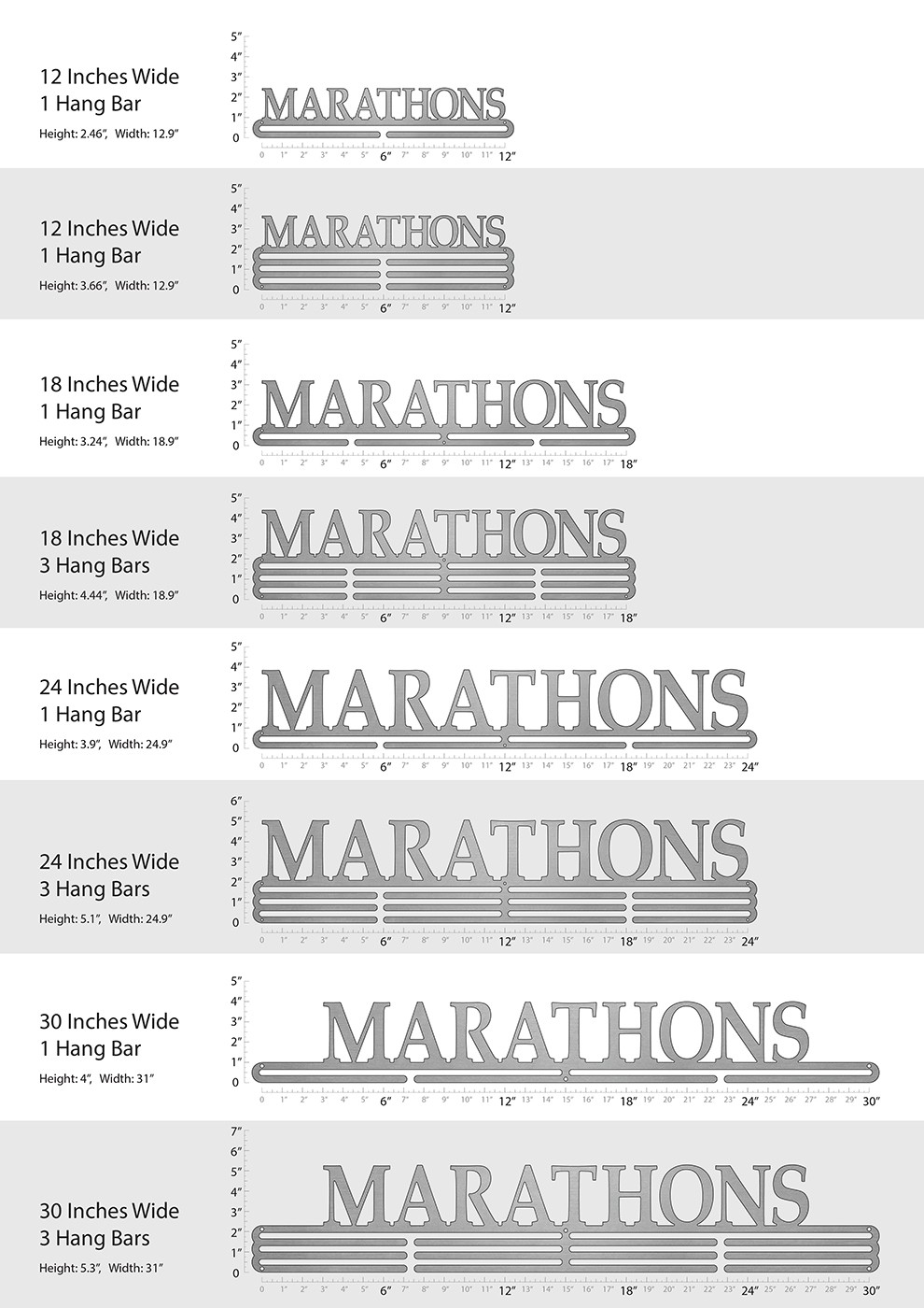 Unsure what size to get? We have created two consistently scaled images to show you what different sized displays look like when filled with medals.