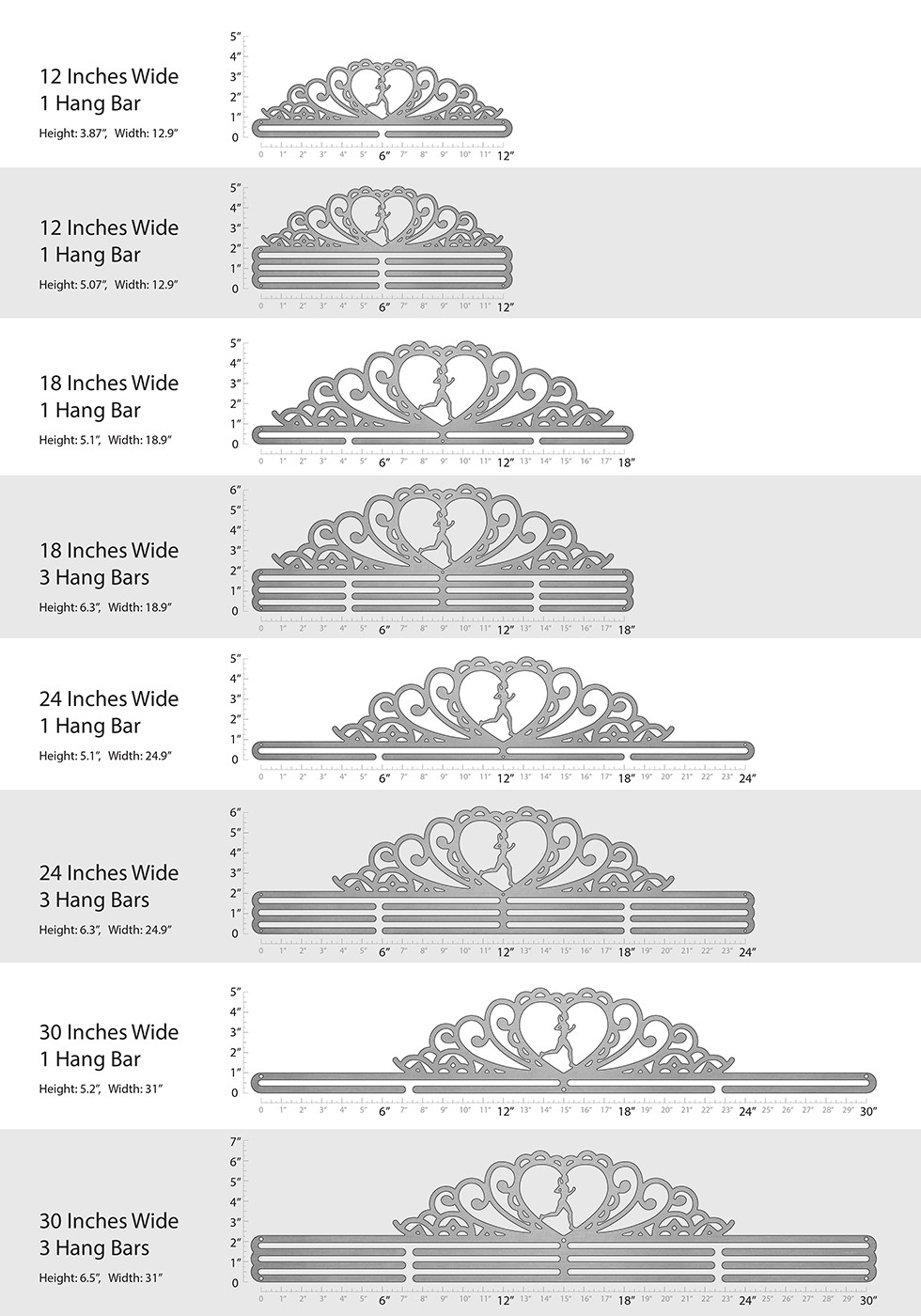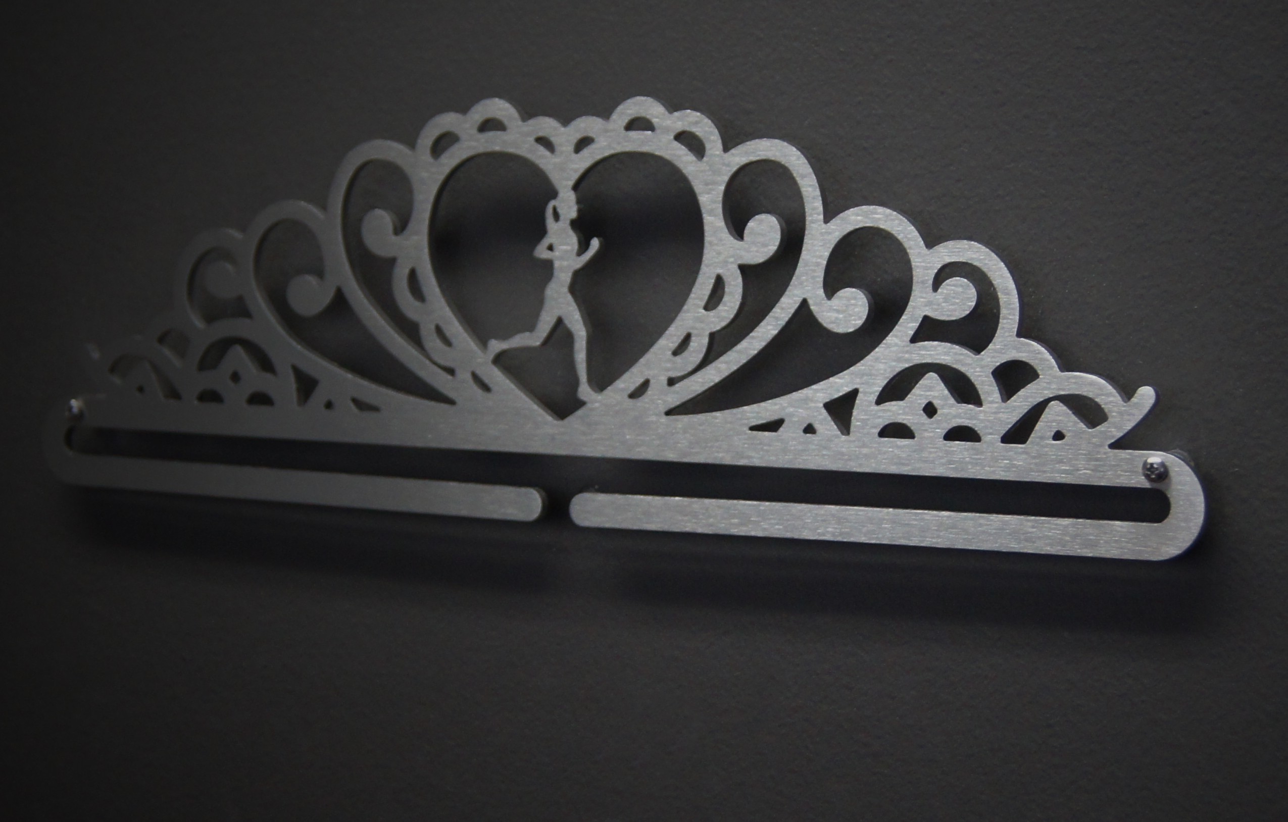 A medal hanger designed specifically with running princesses in mind. Whether you run 5Ks, 10Ks, 13.1, 26.2, 70.3, 140.6 or beyond, this display is perfect for exhibiting your remarkable accomplishments. You earned them, now display them with pride!