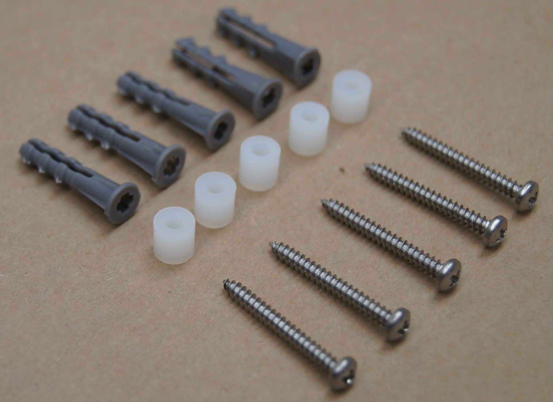 5-XLG: For any size belt display header. Includes a set of FIVE screws (2-1/2" long #6), spacers (3/4" long), and drywall anchors