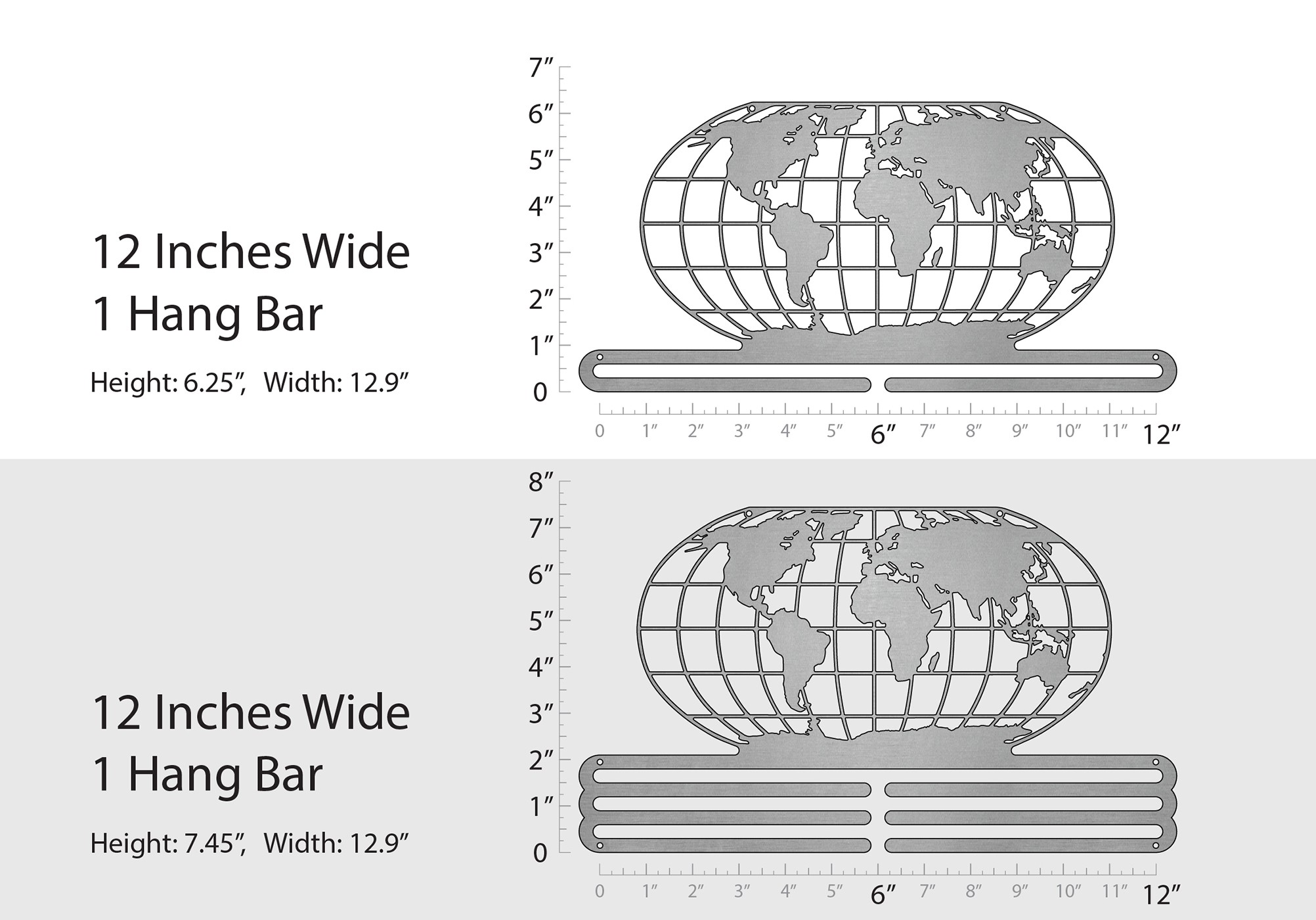 Unsure what size to get? We have created two consistently scaled images to show you what different sized displays look like when filled with medals.