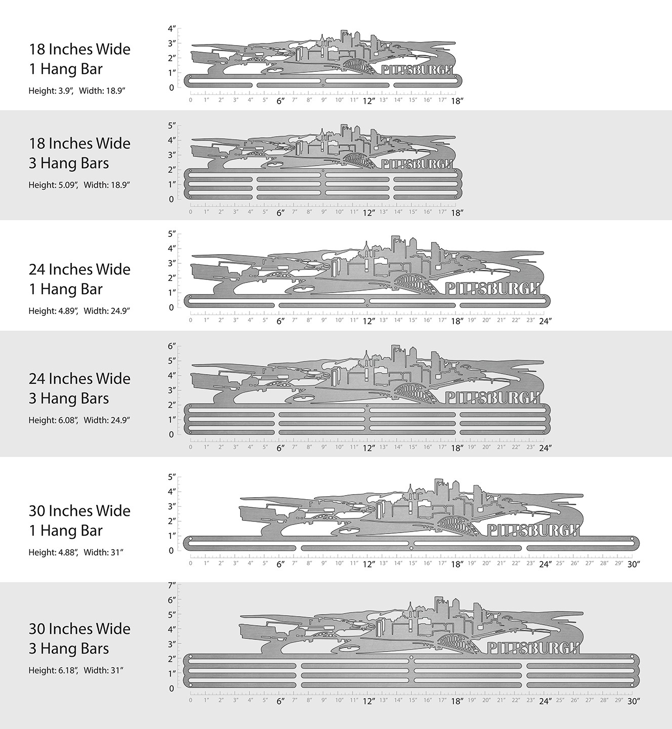Unsure what size to get? We have created two consistently scaled images to show you what different sized displays look like when filled with medals.